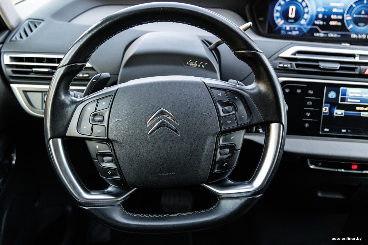 По ощущениям, C4 Grand Picasso — более легковой в сравнении с Caravan. Он не такой валкий и кажется более надежным в управлении. Плюс есть электронные системы. Адаптивный круиз-контроль — незаменимая вещь при поездках на дальние расстояния. Мне он нравится тем, что может простить мелкую ошибку водителя: где-то ты зазевался, не успел среагировать, и машина сама начинает замедляться или же подает звуковой сигнал, если перед тобой выскочил другой автомобиль, человек или животное, — поясняет владелец.