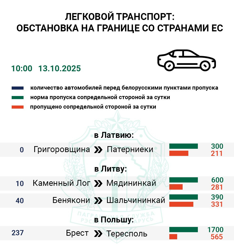 Как сообщил сегодня Государственный пограничный комитет, в понедельник перед единственным доступным для легковушек польским пунктом пропуска «Тересполь» («Брест») фиксируется 237 авто. В ГПК отмечают, что сопредельная сторона c пятницы приняла на свою территорию лишь 35% авто от нормы.