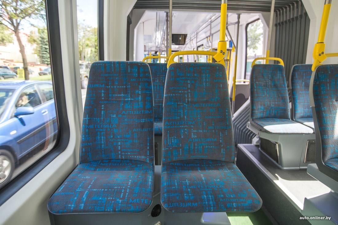 Снаружи T811 выглядит современно — с характерной «утюжной» формой, которая, как оказалось, продумана не только ради дизайна. Такая конструкция помогает избежать серьезных травм, если кто-то случайно окажется на пути вагона. Внутри — USB-зарядки, видеонаблюдение и даже система пожаротушения. Все сделано с расчетом на комфорт, безопасность и долгую службу — производитель обещает, что такие трамваи будут ездить по Минску не меньше 30 лет.