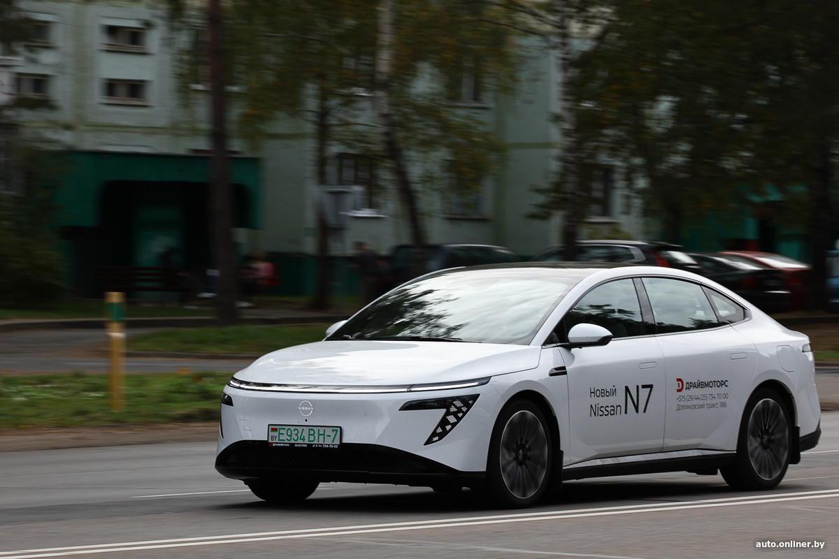 Nissan N7 доступен с двумя вариантами силовой установки — мощностью 218 л. с. и с литий-железо-фосфатной батареей компании Sunwoda емкостью 58 кВт·ч или же мощностью 272 л. с. и с аккумулятором на 73 кВт·ч. Время разгона с места до 100 км/ч составляет 8,5 и 6,9 секунды соответственно, запас хода — 510—540 и 625—635 км по циклу CLTC в зависимости от варианта исполнения. В любом случае единственный электромотор установлен на передней оси. Тестовый автомобиль был с более мощной силовой установкой.