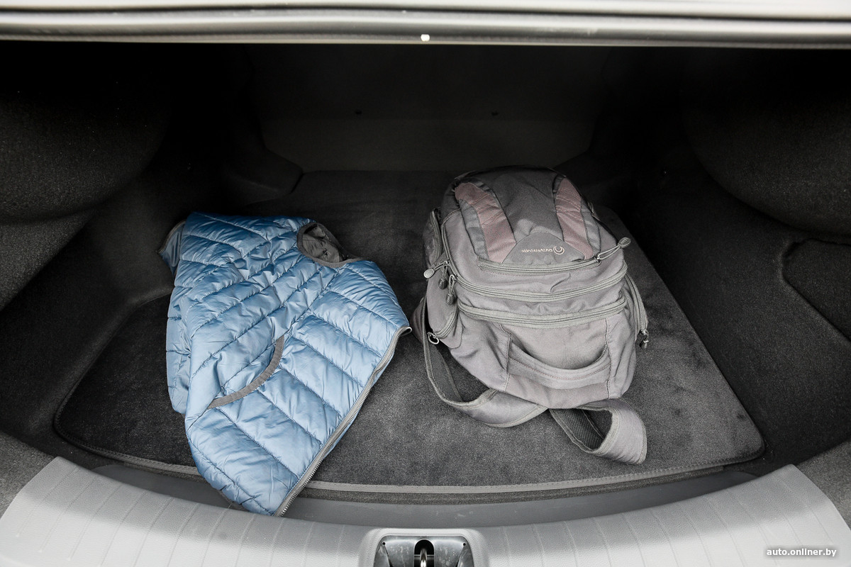 Багажник тоже не подкачал: при заявленном объеме в 504 литра он имеет удачную форму и полностью отделан мягкой обивкой, а в подполье скрывается небольшой дополнительный отсек. Массивные дуги крышки хоть и прячутся в боковые панели, но все равно съедают часть полезного пространства. Сама крышка — с электроприводом, однако открывать ее в слякотную погоду лучше с ключа — кнопка на заднем бампере наверняка быстро потеряет чистоту.