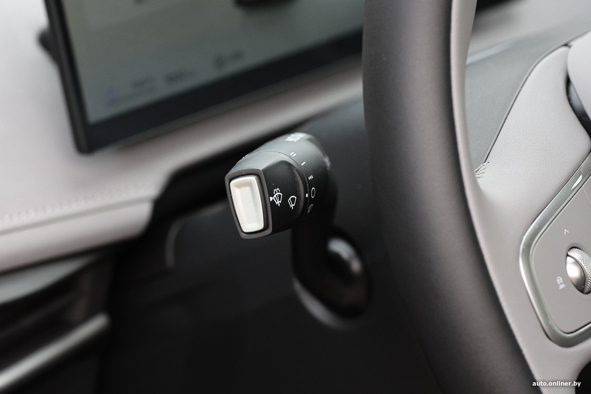 Во время поездки больше всего напрягал нефиксируемый подрулевой переключатель, отвечающий за поворотники. Казалось бы, это уже давно используемое решение на многих автомобилях, которое должно быть отлажено. Ан нет, переборщить с усилием проще простого, и вместо краткого срабатывания получаешь постоянное мигание сигналов. Хочешь исправить ситуацию, аккуратно толкая рычаг в обратную сторону, — и вместо отключения правых поворотников включаешь левые.