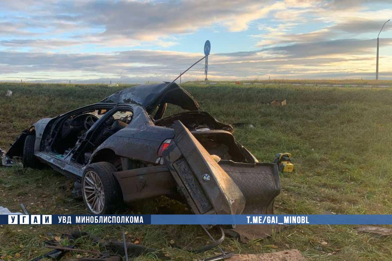 — 25-летний водитель BMW, по предварительной информации, не справился с управлением, выехал за пределы проезжей части, наехал на дорожный знак, далее съехал в правый по ходу движения кювет, где опрокинулся, — сообщает ГАИ Минской области.