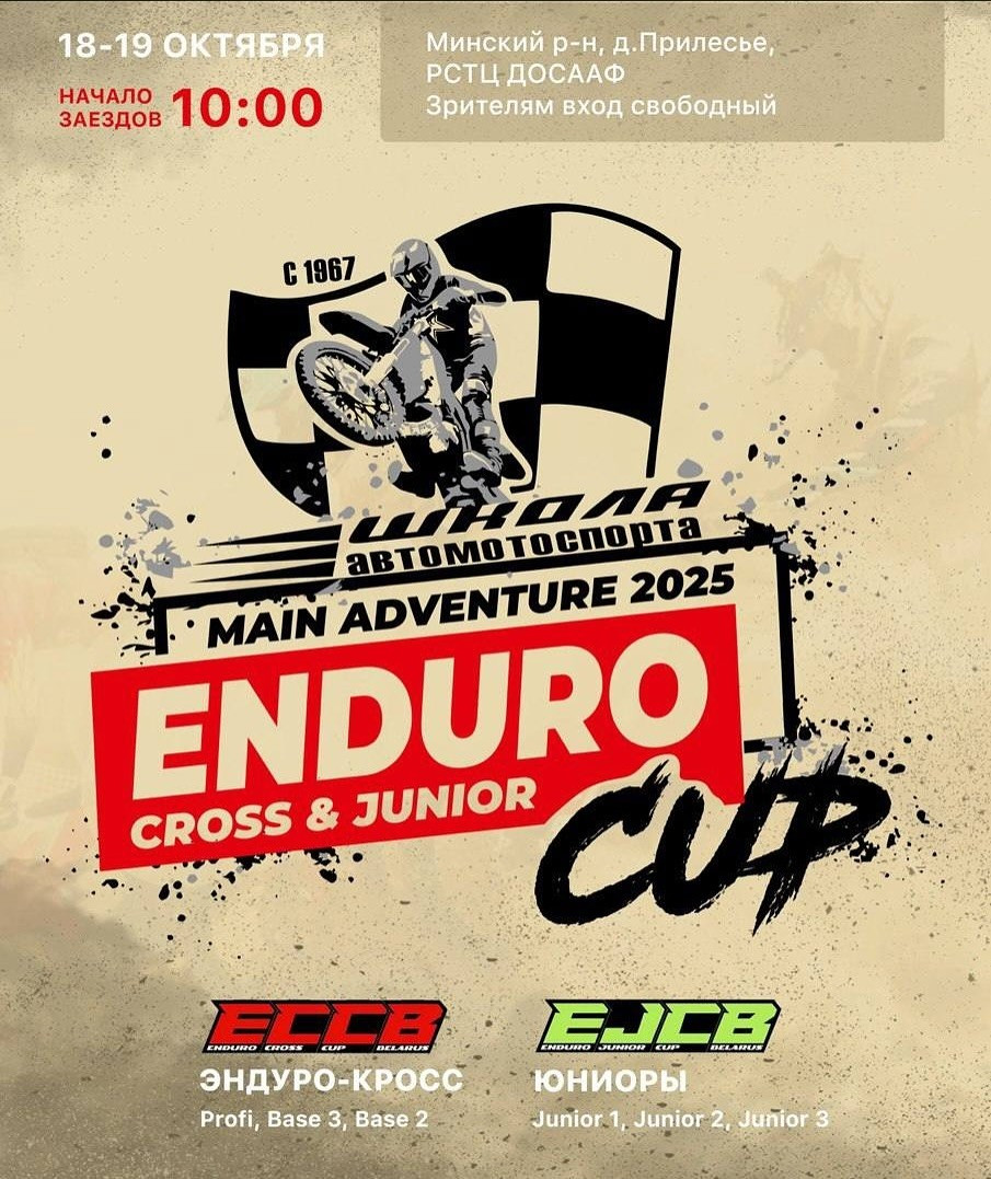 Под Минском в деревне Прилесье (спортивный комплекс ДОСААФ) пройдут экстремальные гонки — эндуро-кросс. Дисциплина относительно новая для нашей страны, но уже успела заслужить большую популярность! Заезды пройдут в два дня. В субботу отгоняются юниоры, в воскресенье — взрослые классы.