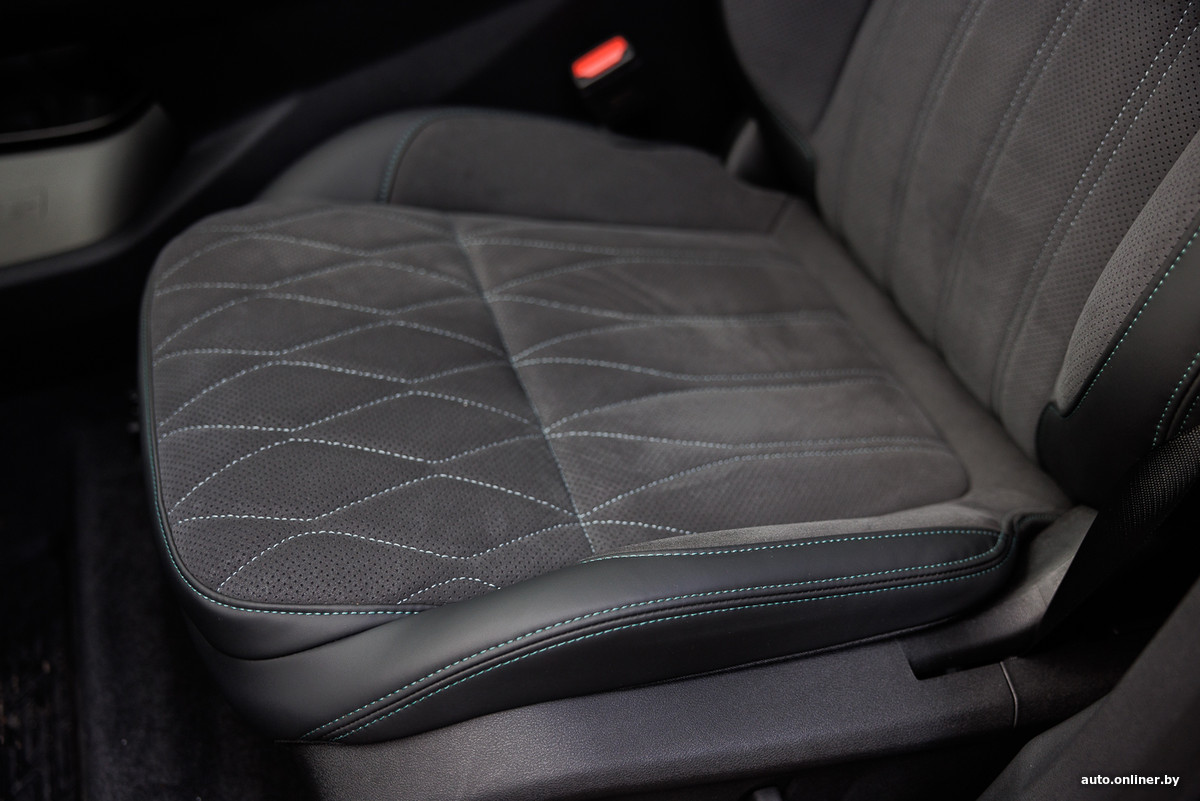Изменились и сами сиденья. Так, передние кресла получили более длинные подушки, а водительское еще и обзавелось массажем. Жаль, что этой функцией обделили переднего пассажира, зато понятно, кто здесь главный. У водительского места в принципе больше регулировок. Отдельного упоминания в этом отношении заслуживает возможность настройки поясничного упора в четырех направлениях, а также подушки по углу наклона. И вообще все отлично: умеренная жесткость, развитая боковая поддержка и цепкая обивка, не только трехрежимный подогрев, но еще и вентиляция.