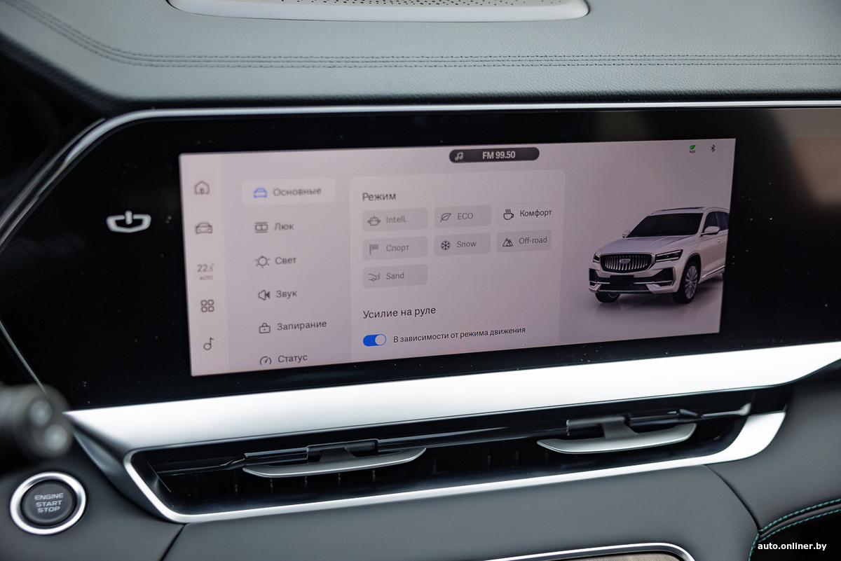 Но маркий черный глянец остался на месте, как и три экрана размером 12,3 дюйма каждый. А вот мультимедийная система — с новым интерфейсом и графикой в стиле Preface. Логика меню привычная, но кое-что изменилось в наполнении закладок. Например, теперь можно выбрать режим работы амортизаторов — они ведь в обновленном Monjaro электронноуправляемые. Интересно, какой вклад они вносят в ездовой характер машины?