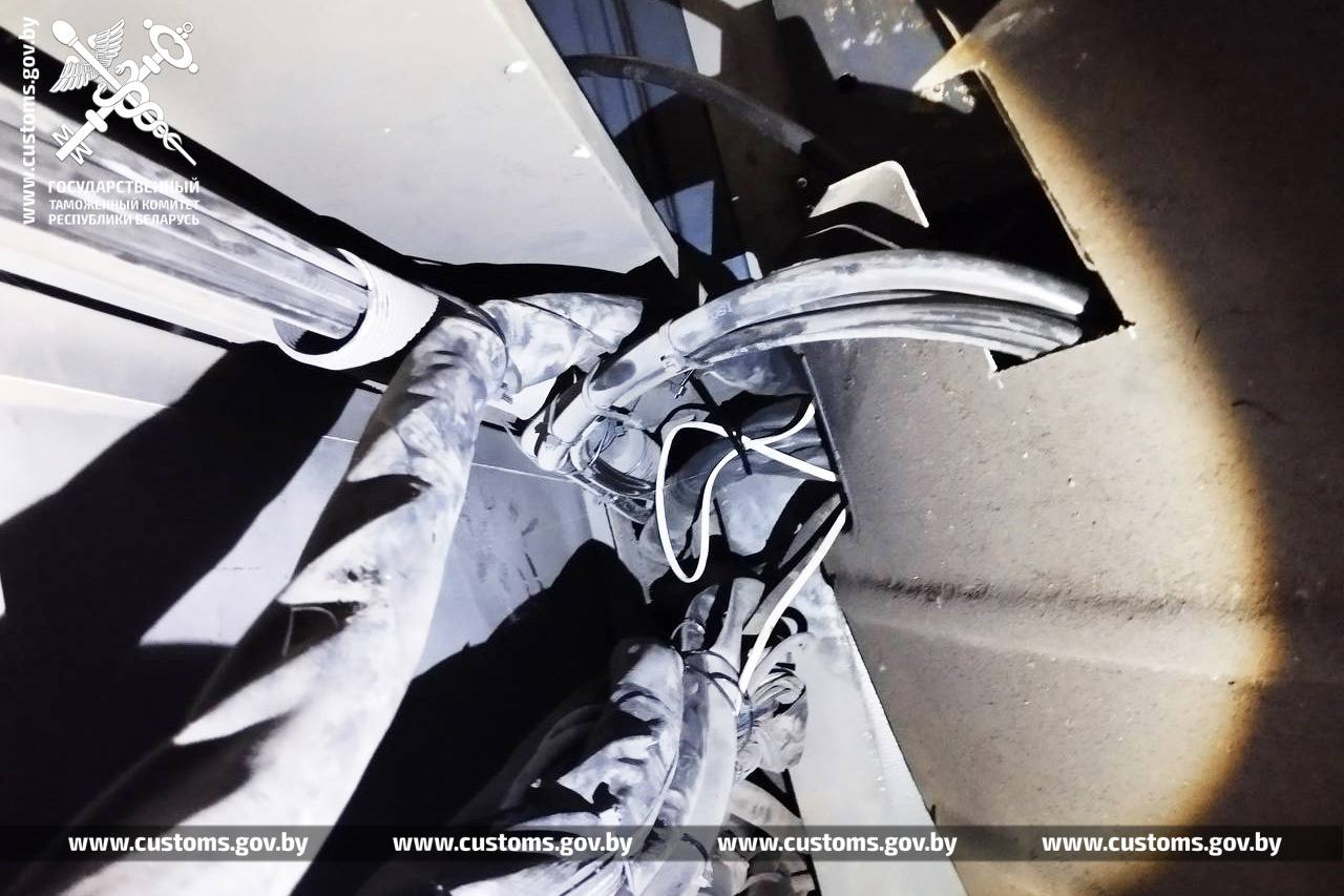 Гражданин Польши, водитель автобуса Neoplan, выезжал из Беларуси через пункт пропуска «Брест». При осмотре багажного отделения автобуса таможенники обнаружили не предусмотренный заводом-производителем ящик, внутри которого находилась специально изготовленная емкость. В тайнике оказалось 120 литров автомобильного топлива.