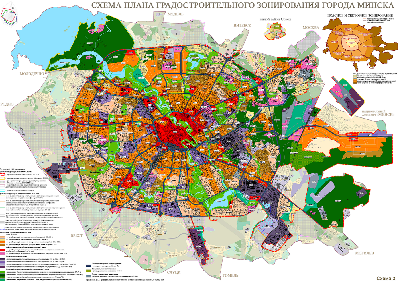 Действующий генеральный план развития столицы до 2030 года предусматривает «формирование эффективной радиально-кольцевой структуры магистральных улиц и дорог», то есть ставка прежняя. И прямо сейчас в Минске три транспортных кольца: «пограничная» МКАД, а также два внутренних кольца — оба ярко выраженных и оба не вполне замкнутых с юго-востока, что обусловлено спецификой застройки и присутствием крупных промышленных объектов.