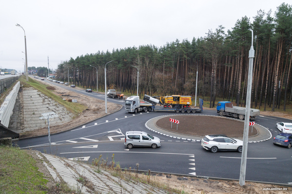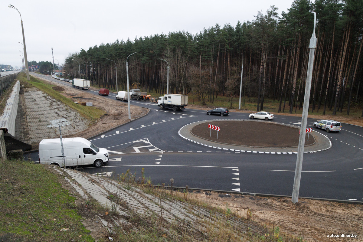 Но главное поджидает тех, кто переедет под путепроводом за внешнее кольцо МКАД. Там появился круговой перекресток, причем не какой-то компактный кружок размером с детскую песочницу, а полноценный большой круг, где и грузовой длинномер впишется в разворот.