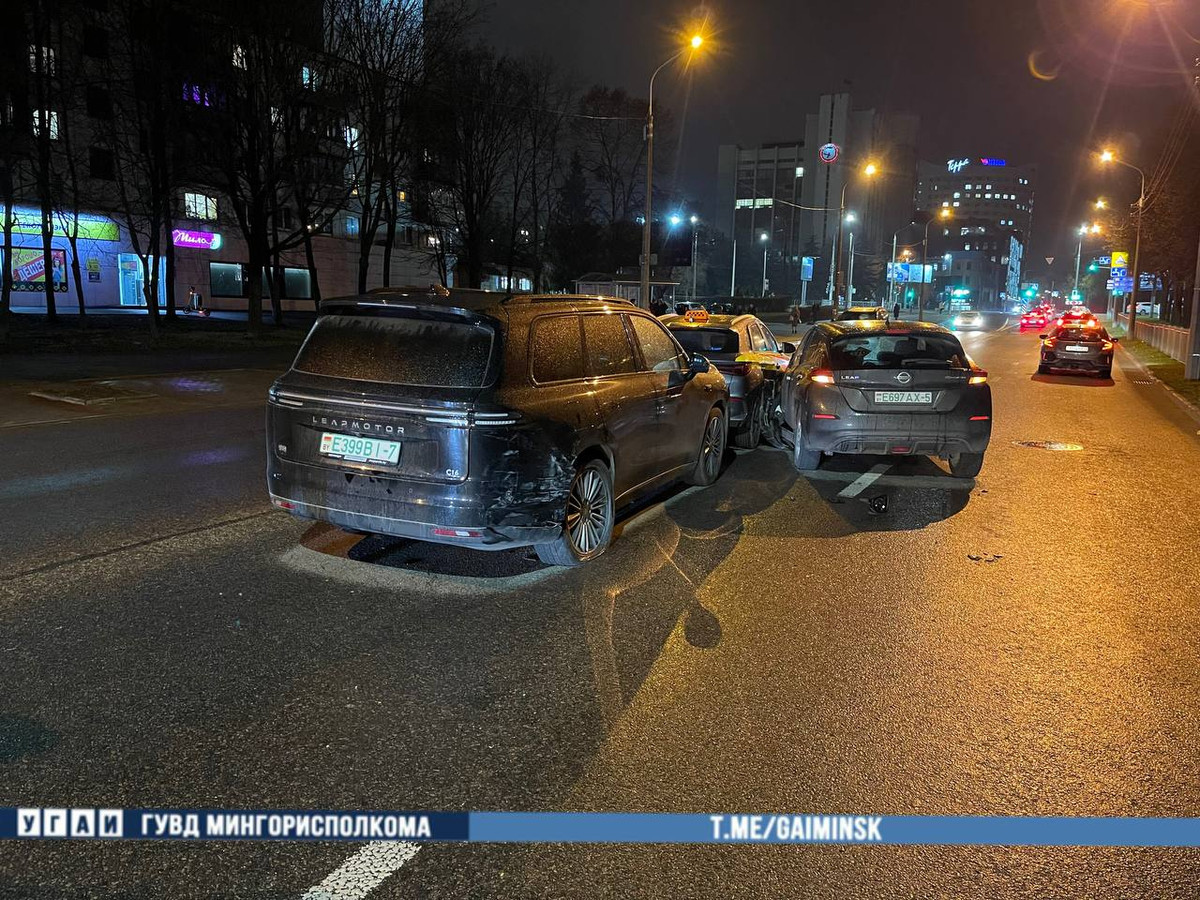 В Минске на улице Волгоградской столкнулись четыре автомобиля — один из них обозначен как такси. ДТП случилось около 17:50 вблизи дома №69.
