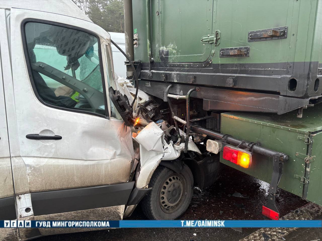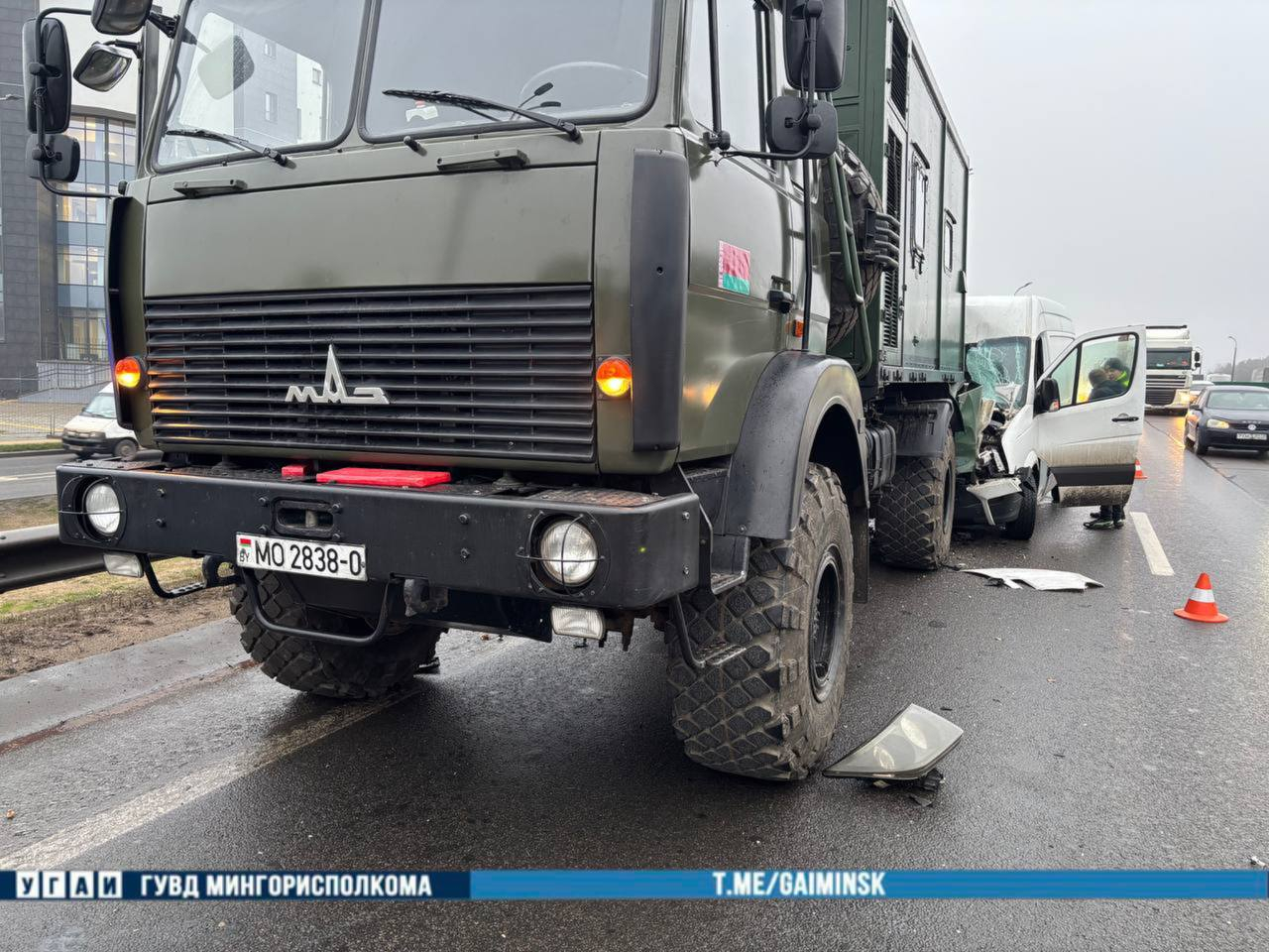 ГАИ Минска сообщила о ДТП, которое случилось сегодня около 15:20 на МКАД в районе 5-го км. 40-летний водитель Volkswagen ехал по внутреннему кольцу, по предварительной информации, отвлекся от управления автомобилем и врезался в МАЗ, стоявший в первой полосе из-за поломки.