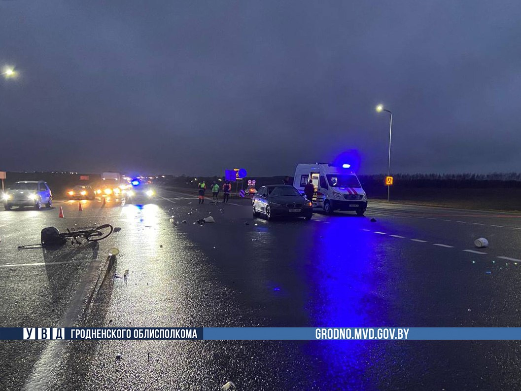 Сегодня около 08:30 на автодороге М6, вблизи деревни Обухово Гродненской области, случилось ДТП. 25-летний водитель BMW двигался со стороны Гродно в направлении Минска и наехал на 67-летнего велосипедиста.