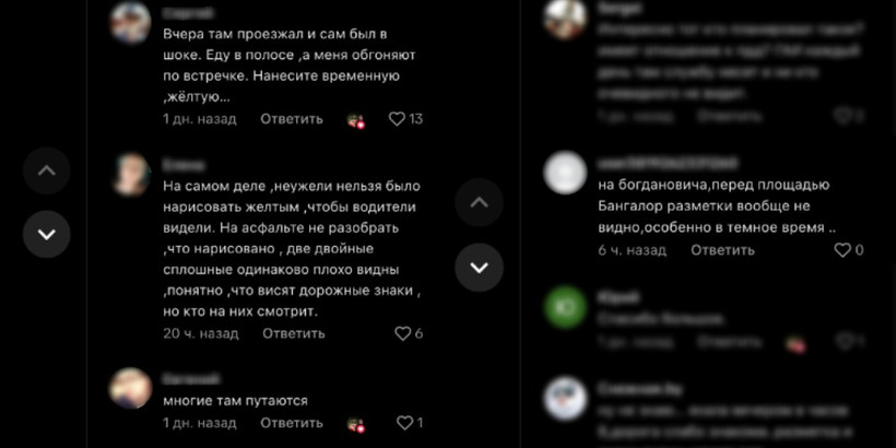 Сложности на этом участке не редкость. В октябре здесь изменилась организация движения в связи со строительством третьей ветки метро: со стороны улицы Кропоткина в направлении улицы Максима Богдановича теперь три полосы движения вместо двух. Но на асфальте все еще видна старая разметка — разделительная полоса, — из-за чего некоторые водители путаются, полагая, что тут по-прежнему по две полосы в каждом направлении. Отсюда и те, кто пытается поворачивать налево из среднего ряда, а не из крайней левой полосы.