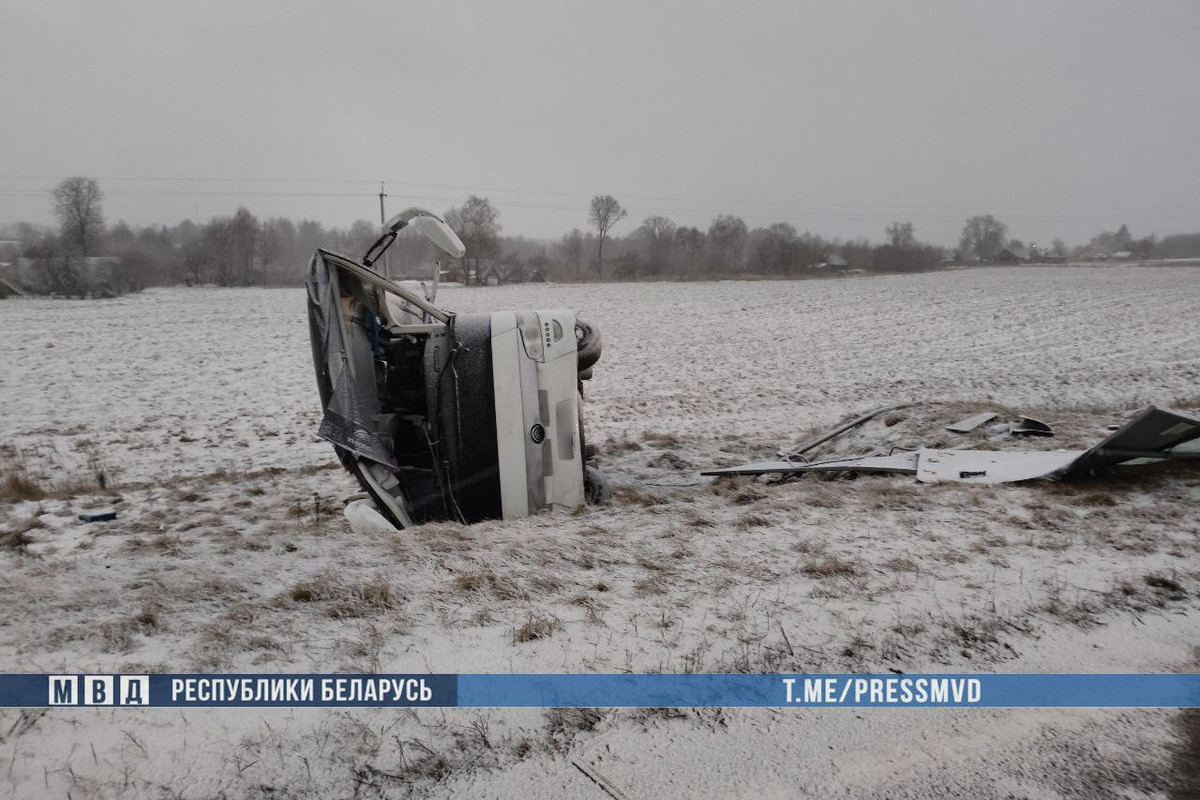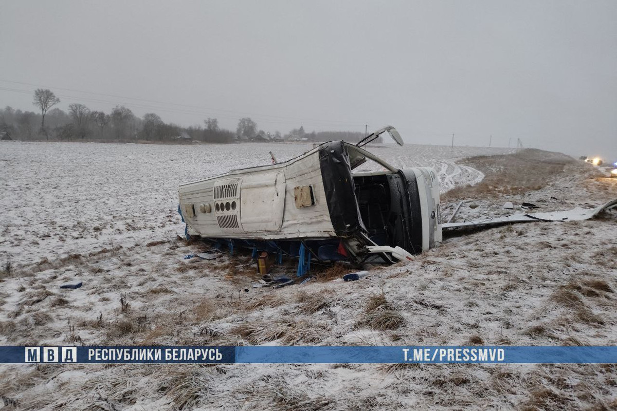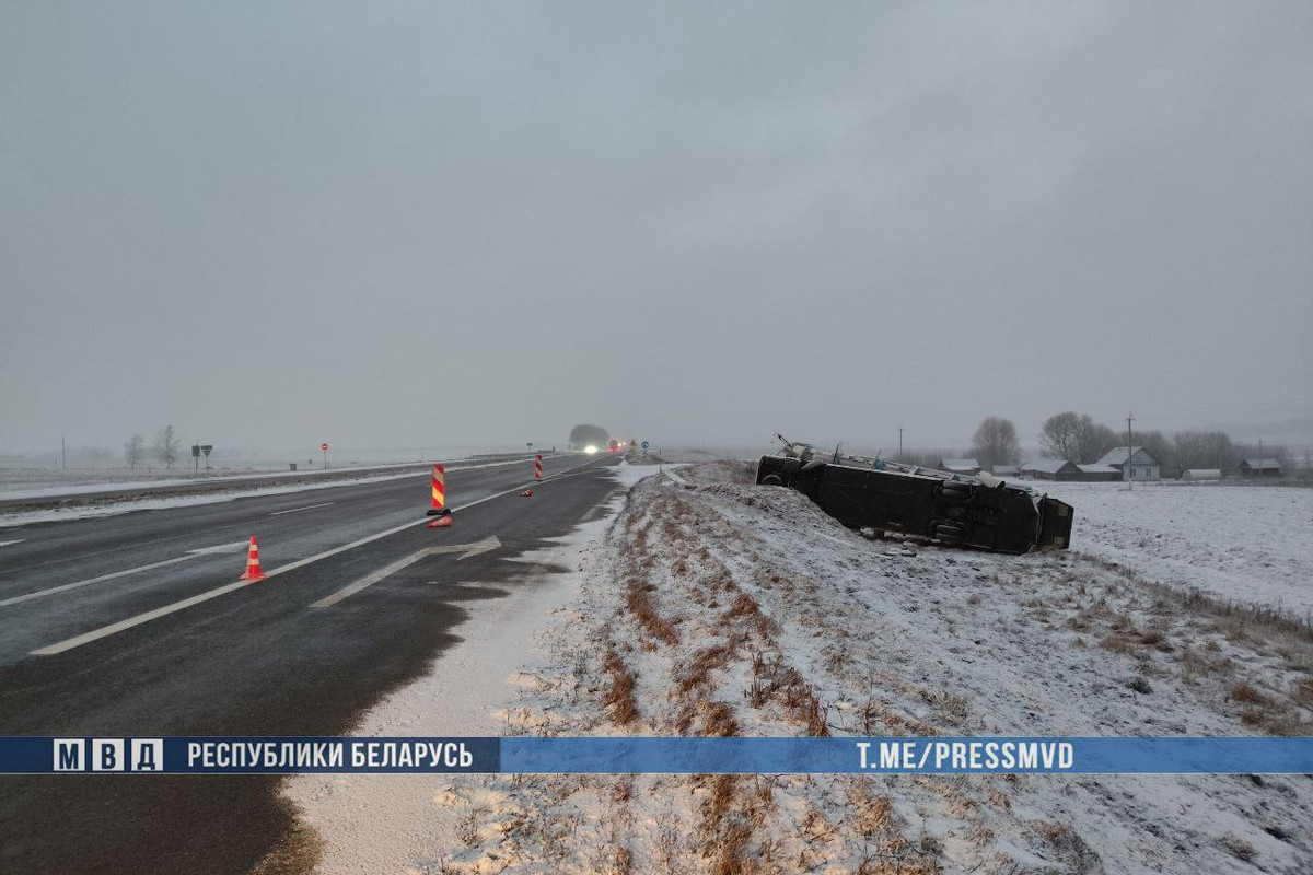 По предварительной информации, 43-летний водитель, который ехал со стороны Минска, не справился с управлением. Автобус съехал в правый по ходу движения кювет и опрокинулся.