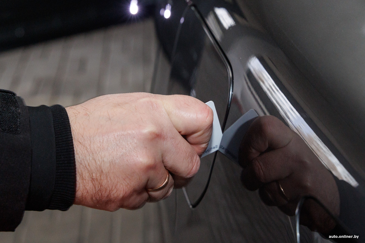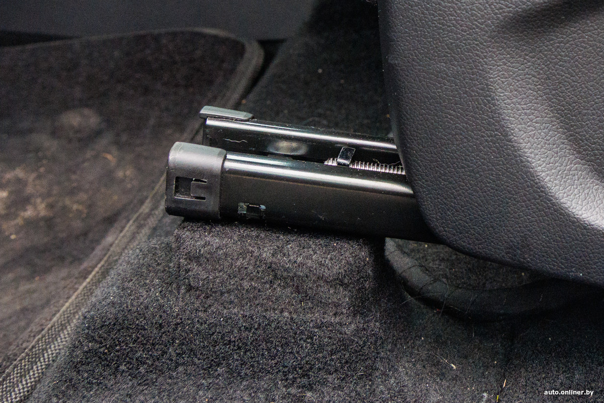 А еще он решил «доставить» доводчики дверей, которых нет по заводу. Механизмы исправно работали вплоть до недавно наступивших морозов, а затем внезапно «ушли в спячку», и «разбудить» их пока не удалось. А в день съемки подмерзла и крышка зарядного порта — пришлось поддевать ее при помощи подручных предметов. Видимо, плохо «продулась» воздухом после мойки накануне.