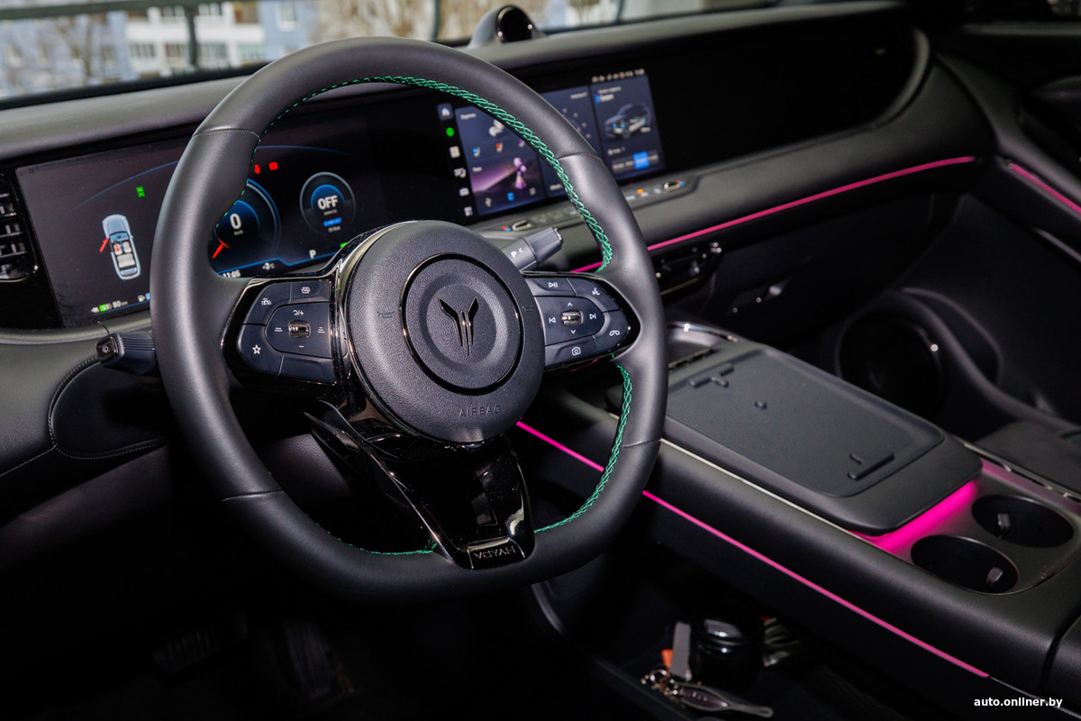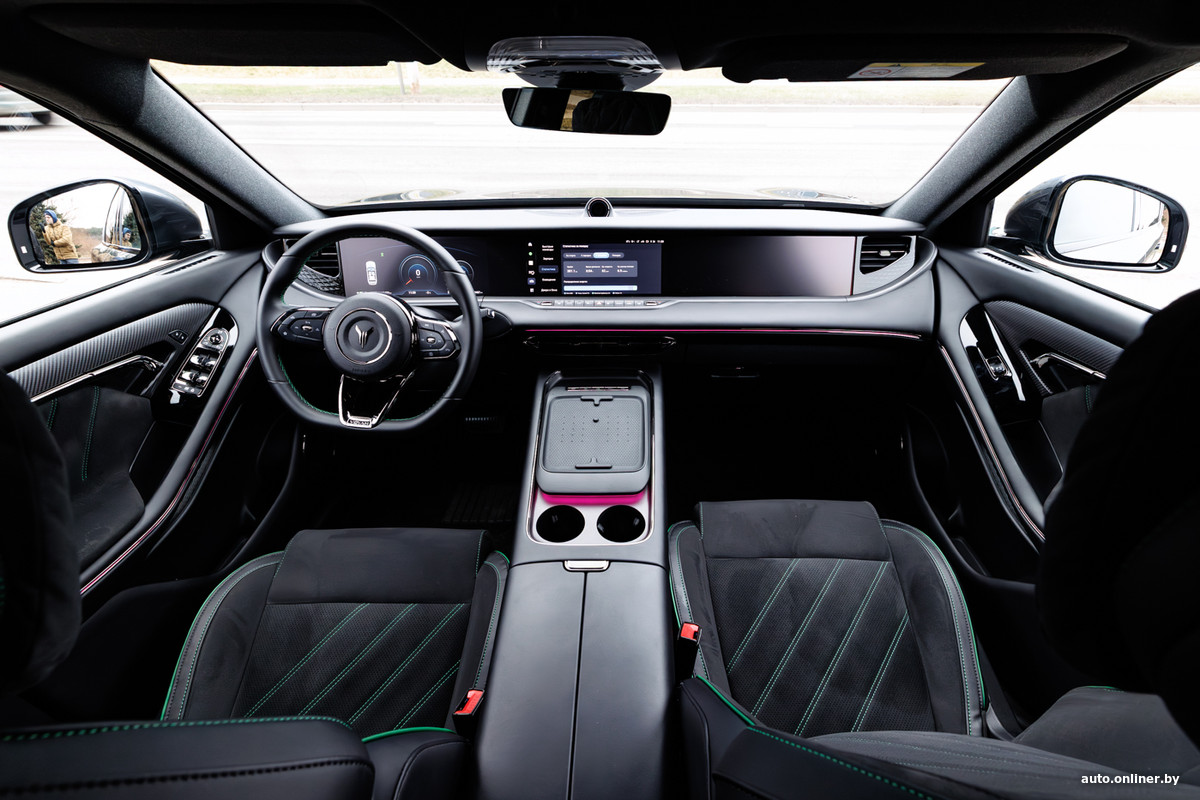 — Эта машина практически электрическая: ДВС только батарею заряжает, а в движение приводят электромоторы. И динамика — 4,5 секунды с места до 100 км/ч. Понятно, что это при заряженной батарее. Но отзывчивость очень хорошая: нажимаешь на педаль, тут же разгоняешься, в этом плане очень приятно едет.