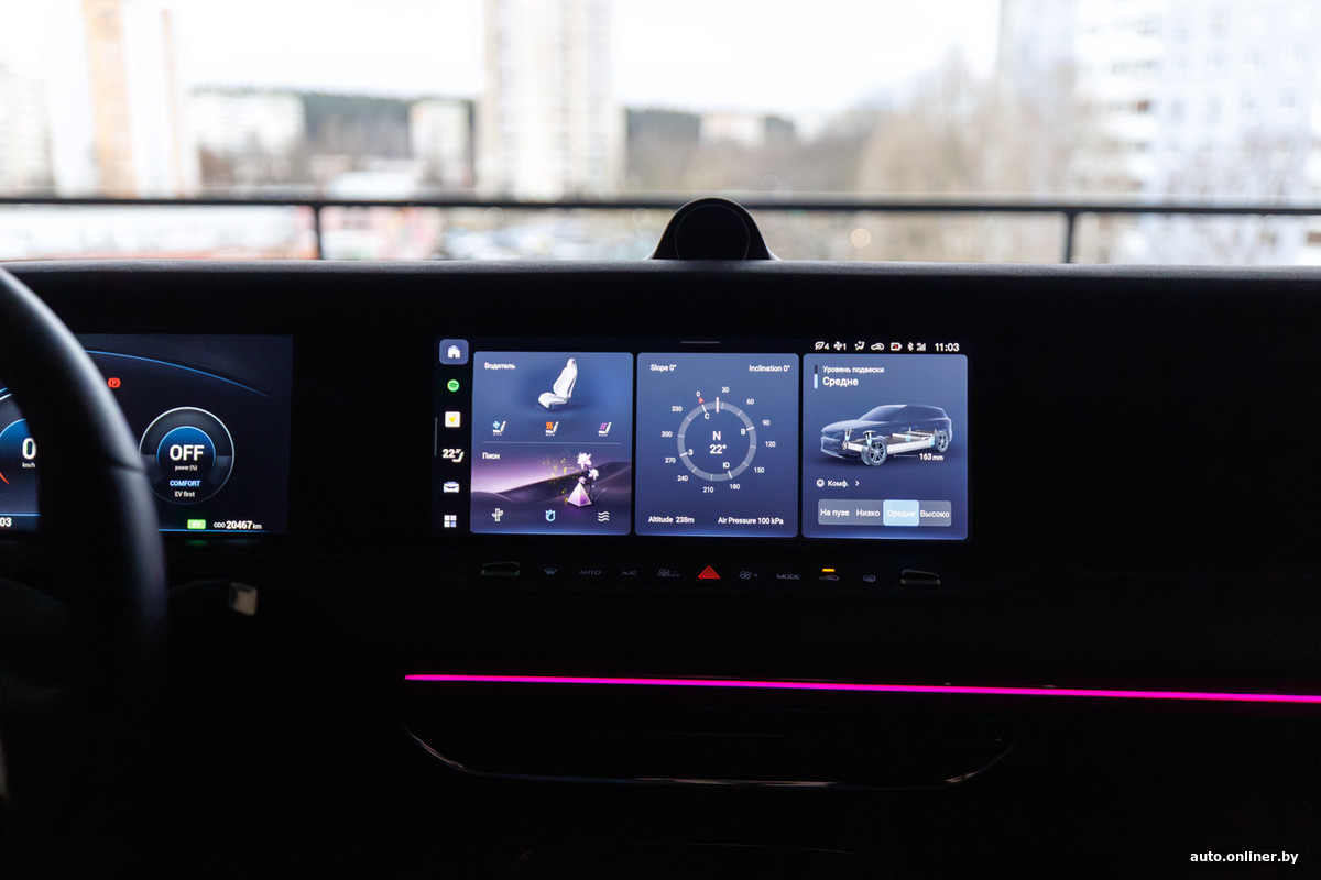 Что касается эргономики, то, по словам владельца, тут все неплохо, но ему хотелось бы иметь чуть больше кнопок. Например, управление головным светом осуществляется через тачскрин. Справедливости ради, изменять дорожный просвет или микроклимат можно при помощи физических клавиш.