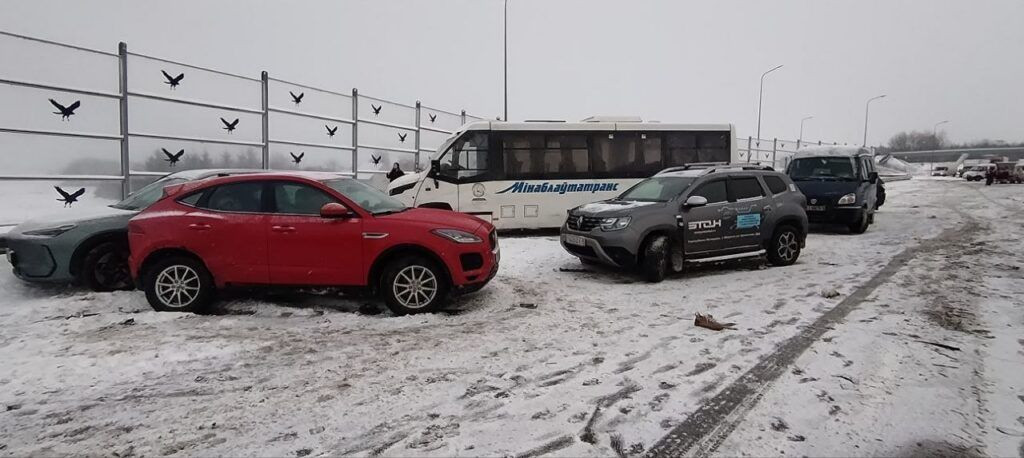 Как рассказали корреспонденту Onlíner читатели, знакомые с ситуацией, авария произошла в момент, когда на трассе сложились весьма сложные погодные условия.