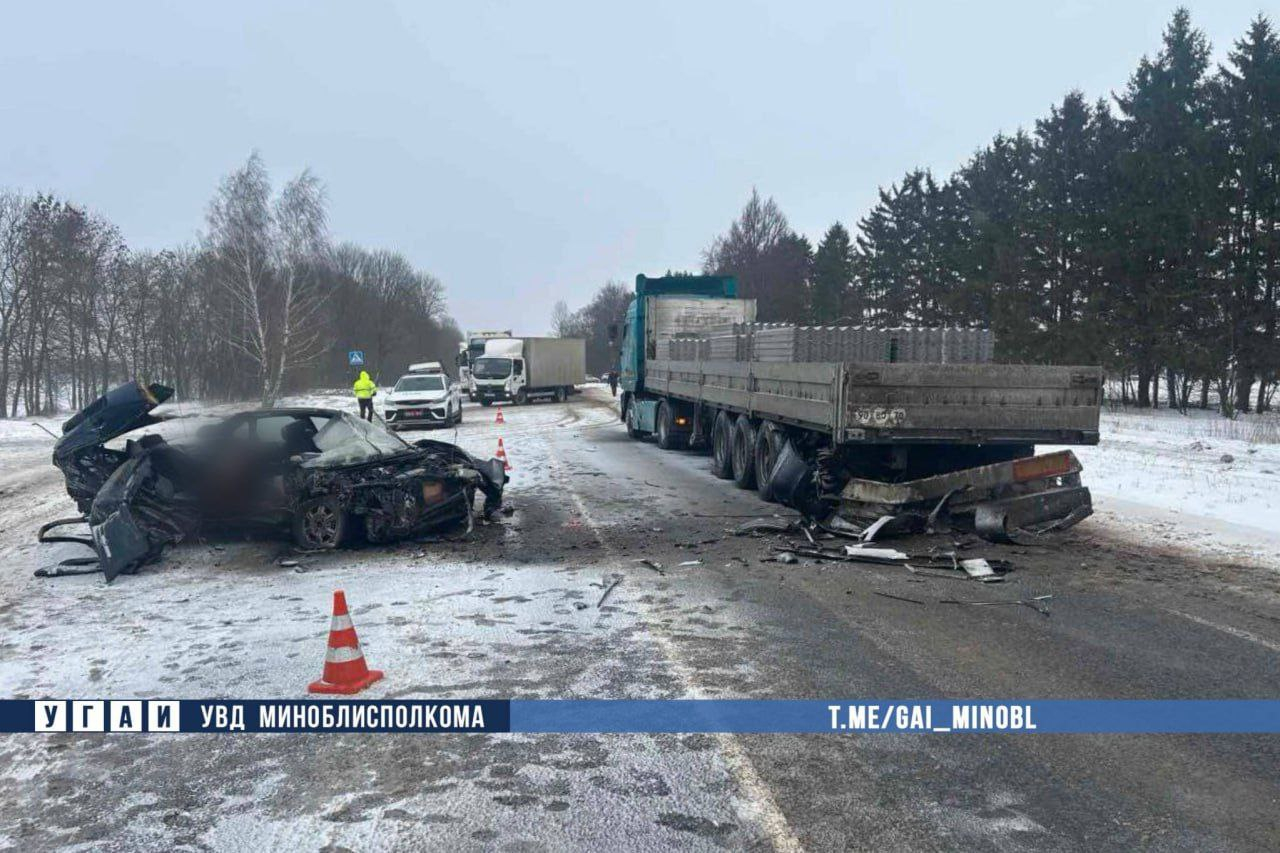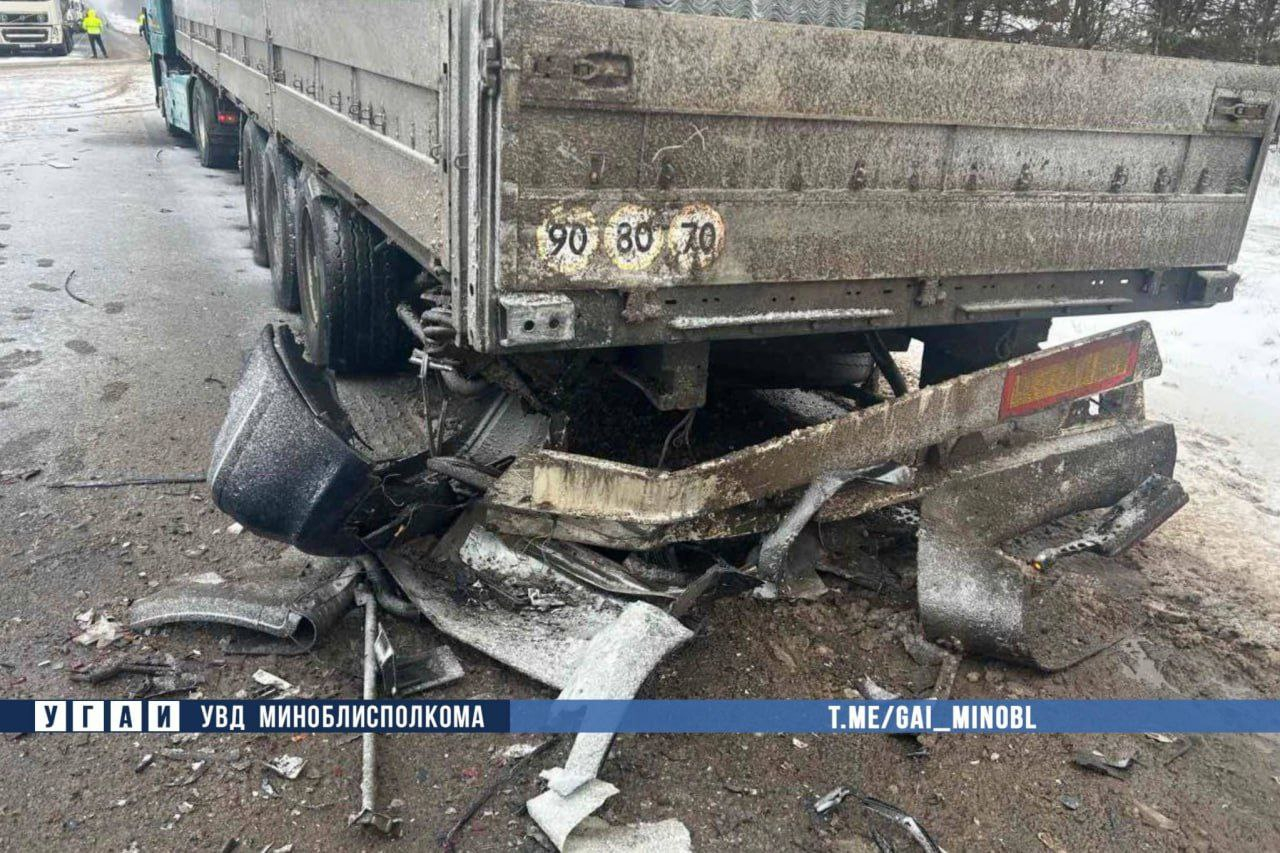 Как сообщает ГАИ Минской области, водитель легкового автомобиля не учел дистанцию, из-за чего произошло столкновение с остановившимся впереди на перекрестке тягачом. За рулем грузовика находился 53-летний водитель, который намеревался повернуть налево.