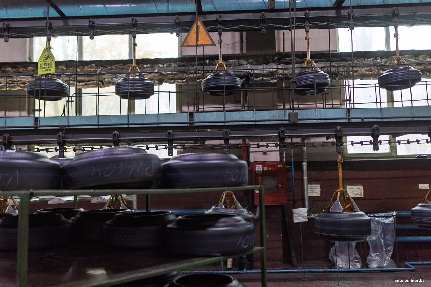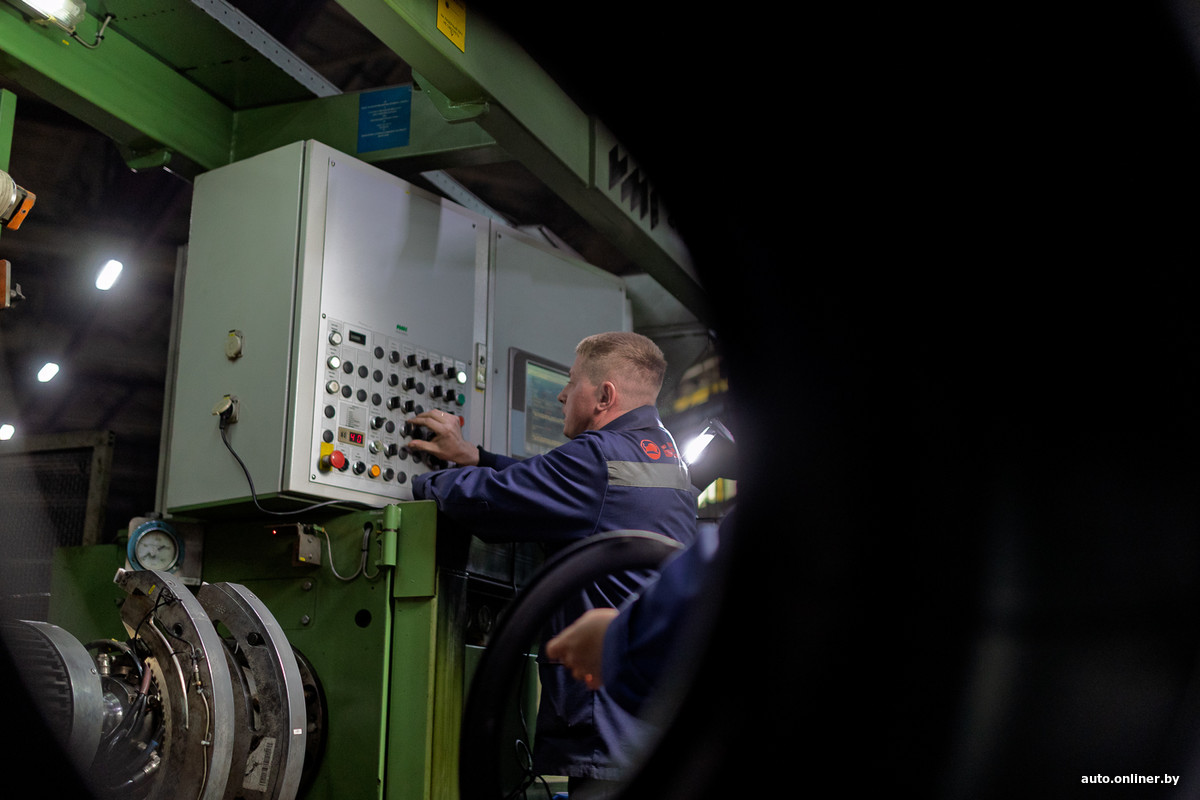 — Пресс работает в автоматическом режиме. В итоге для обслуживания 22 машин достаточно одного или двоих работников. Их задача — навесить шину на загрузчик, а все остальное делает автоматика, — объясняют нам.
