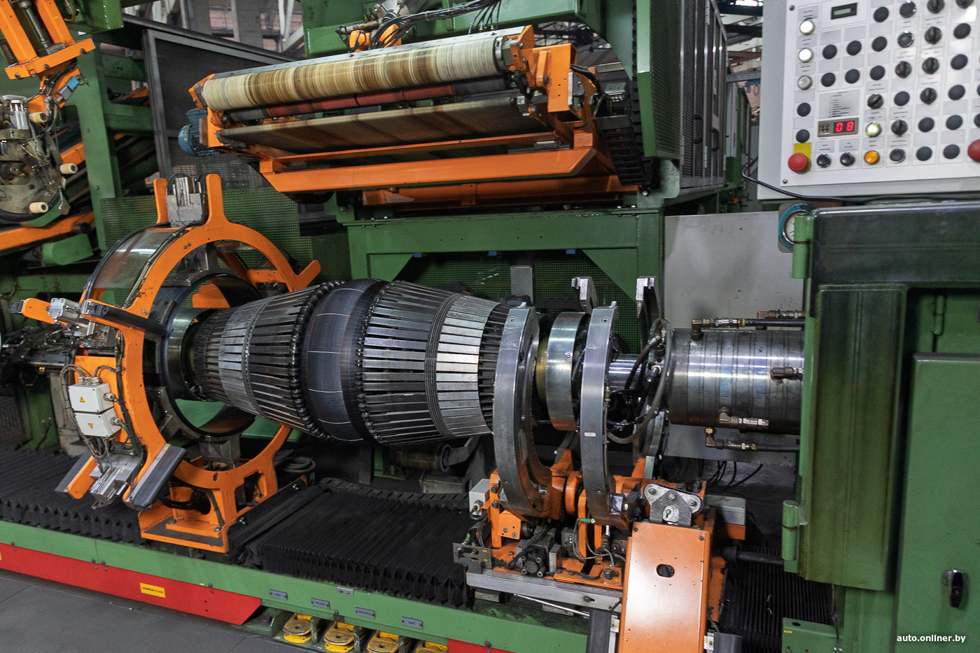 — Я за 15 лет стал специалистом на своем месте: знаю нюансы, тонкости работы, многие модели шин собирал. К тому же, когда я только пришел, как раз устанавливали это оборудование — я досконально его изучил, — говорит Руслан. — Впрочем, на заводе три вида сборочного оборудования, шесть комплексов. На других станках принцип тот же, хотя есть и различия. Например, там, где собирают шины большего диаметра, заготовка подается автоматически — ее не нужно самому поднимать. Но в остальном ничего нового — руки все знают, сноровка есть.