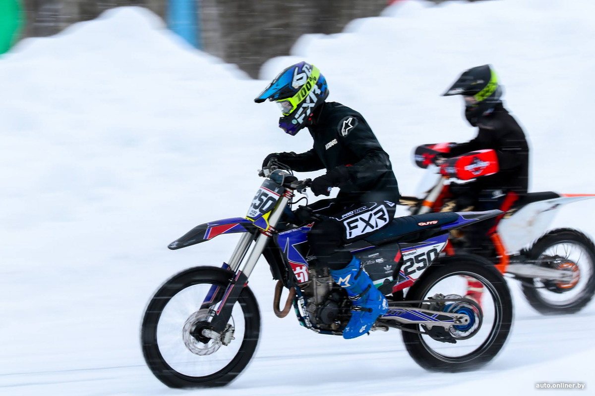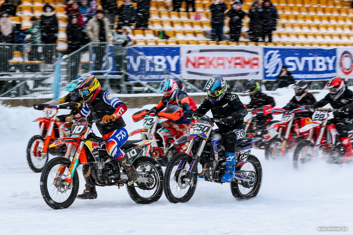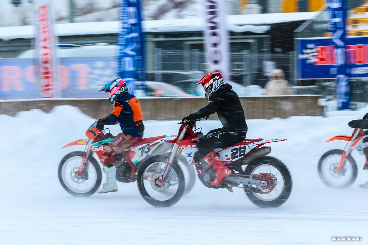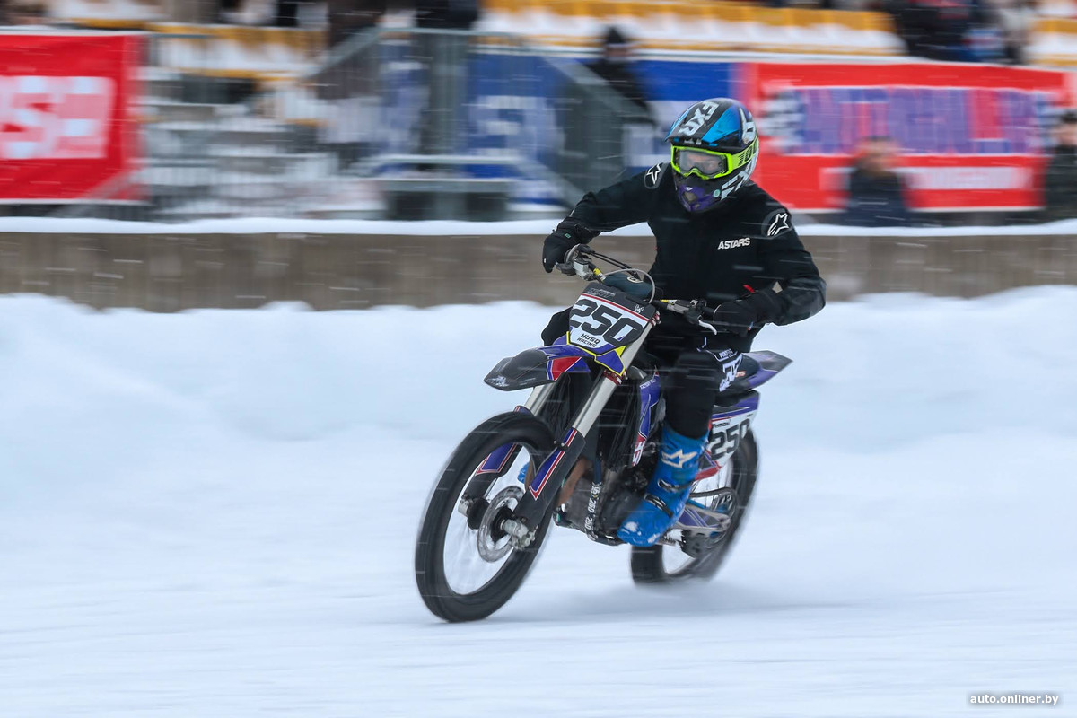 Помимо автомобилей, на дорожку стадиона выезжали и мотоциклисты. Выступления были хоть и показательными, но вполне себе захватывающими. Организаторы планируют в будущем проводить полноценные соревнования и на мотоциклах по ледяному треку.