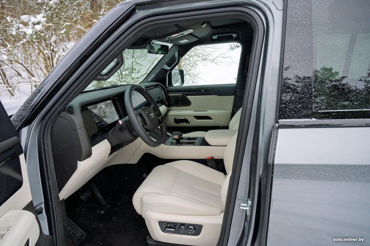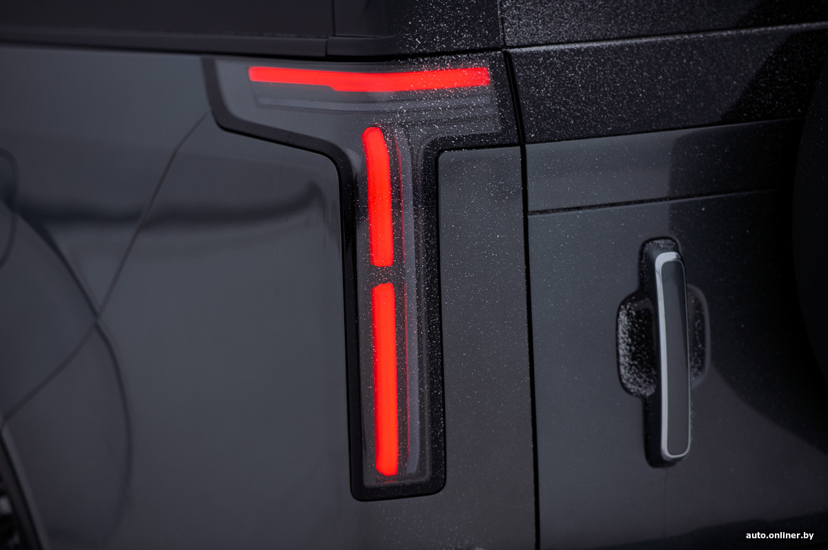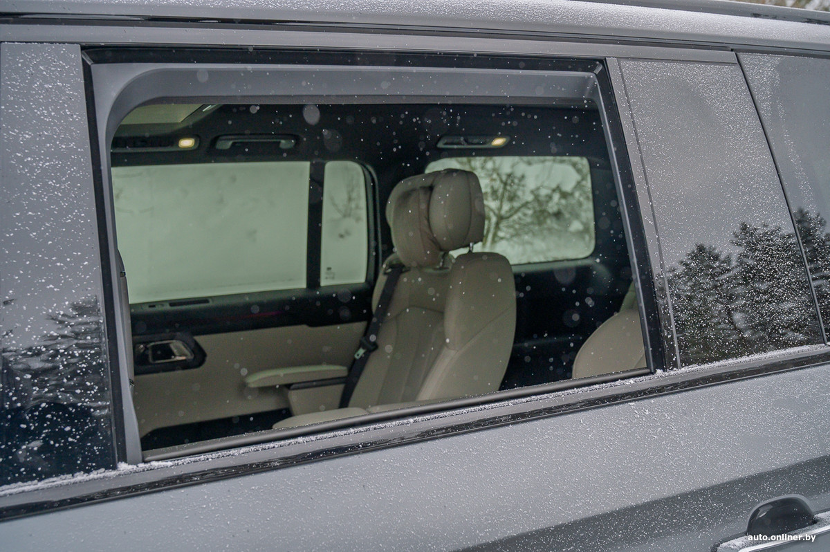 Дело еще, конечно, и в экстерьере. Мощный щит передней решетки, высокая оконная линия и практически прямая крыша, тянущаяся к установленным почти вертикально задним стойкам, даже массивные дверные ручки и крупные зеркала — все играет на образ большого и мощного SUV в лучших традициях американских внедорожников, хотя кто-то увидит здесь и стилистику нового Defender.