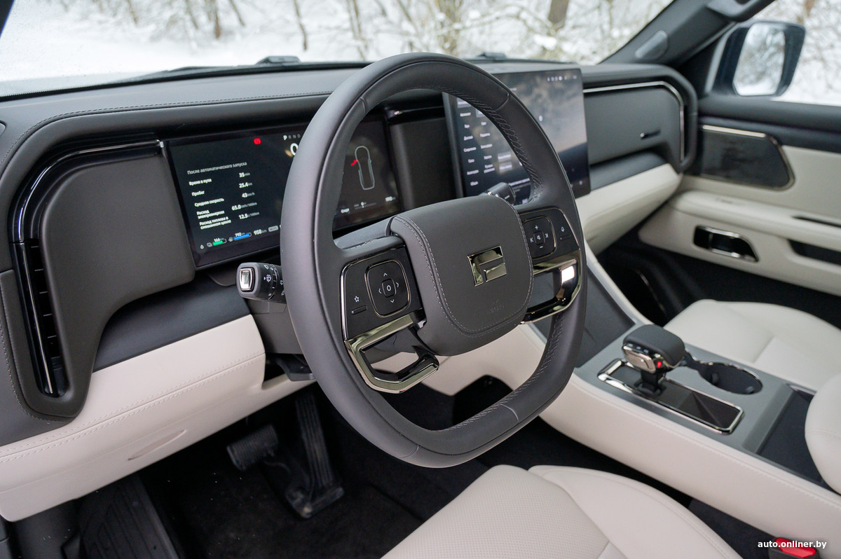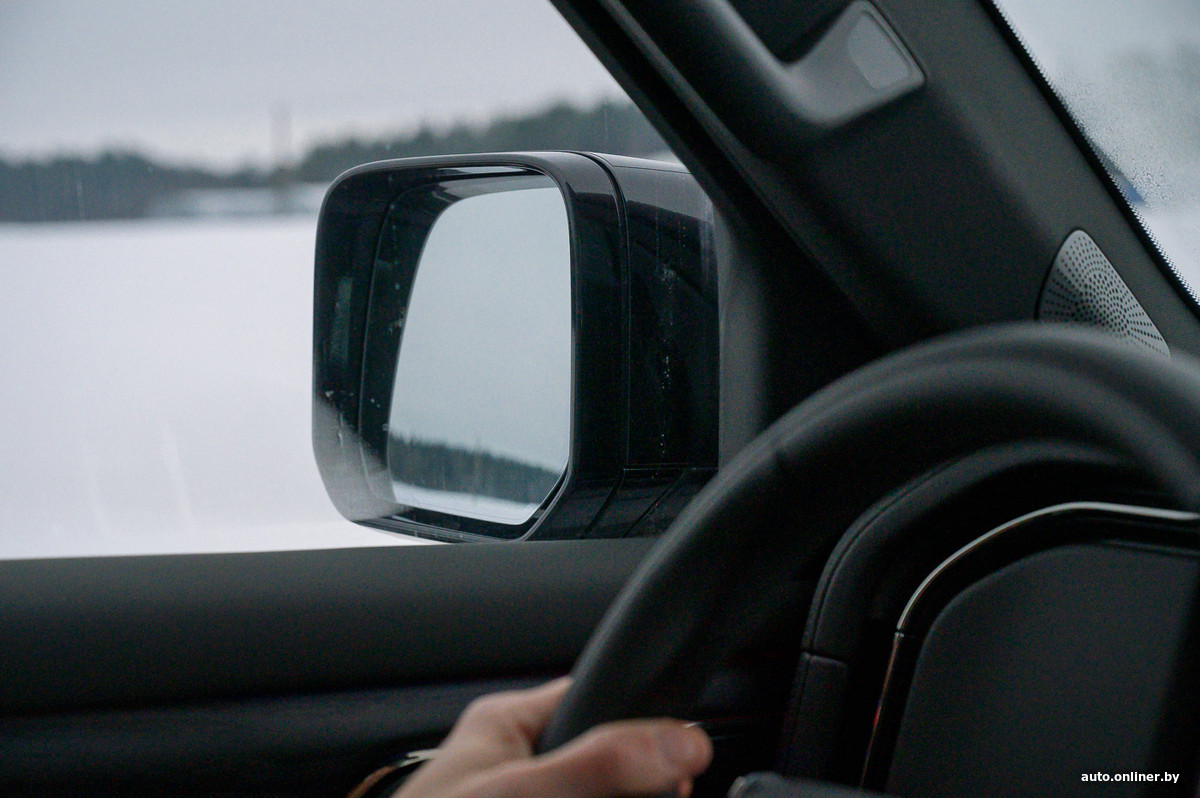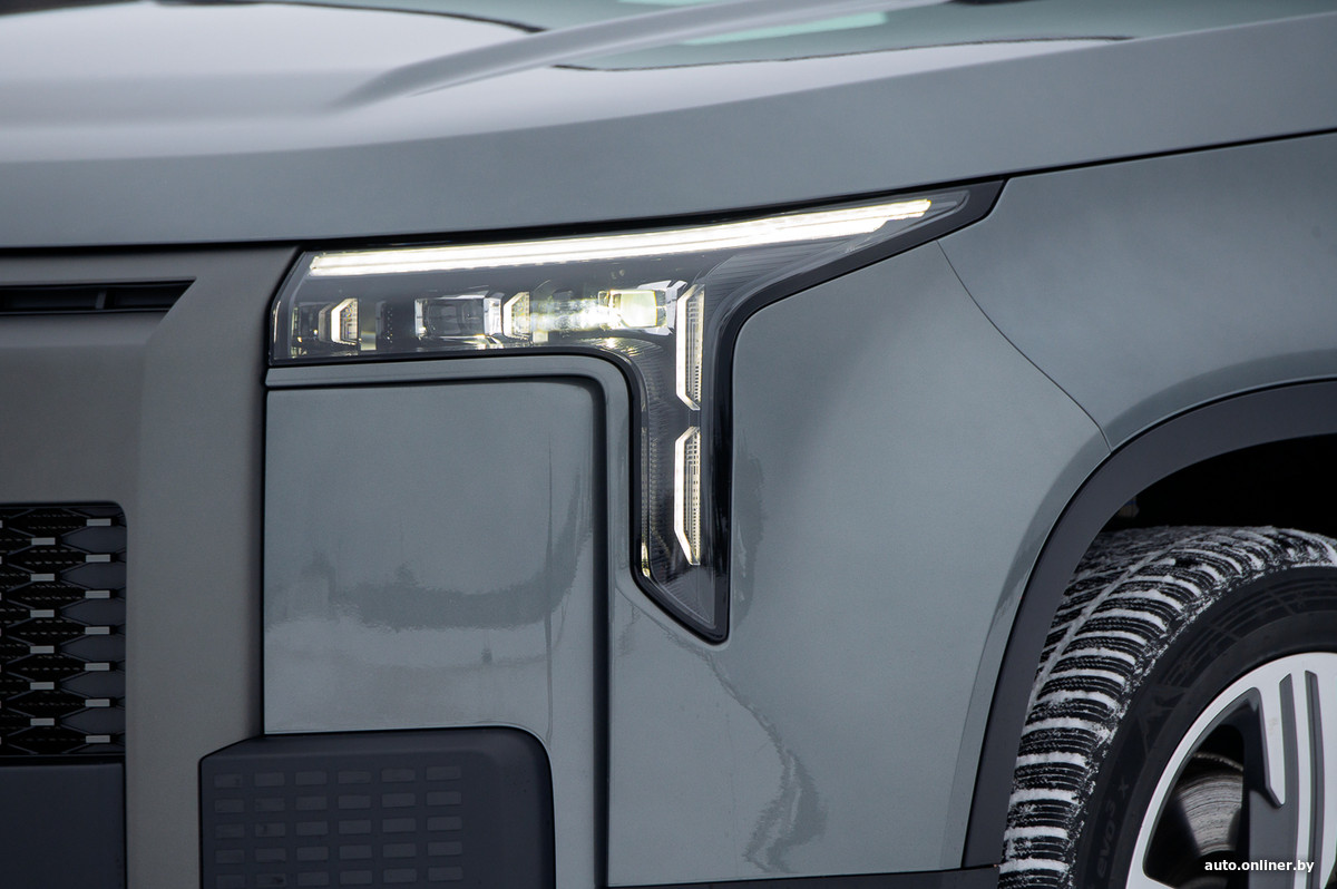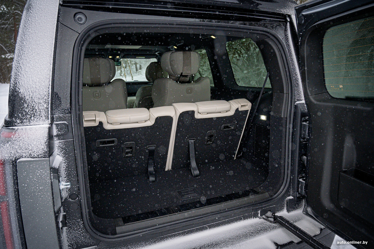 Дело еще, конечно, и в экстерьере. Мощный щит передней решетки, высокая оконная линия и практически прямая крыша, тянущаяся к установленным почти вертикально задним стойкам, даже массивные дверные ручки и крупные зеркала — все играет на образ большого и мощного SUV в лучших традициях американских внедорожников, хотя кто-то увидит здесь и стилистику нового Defender.