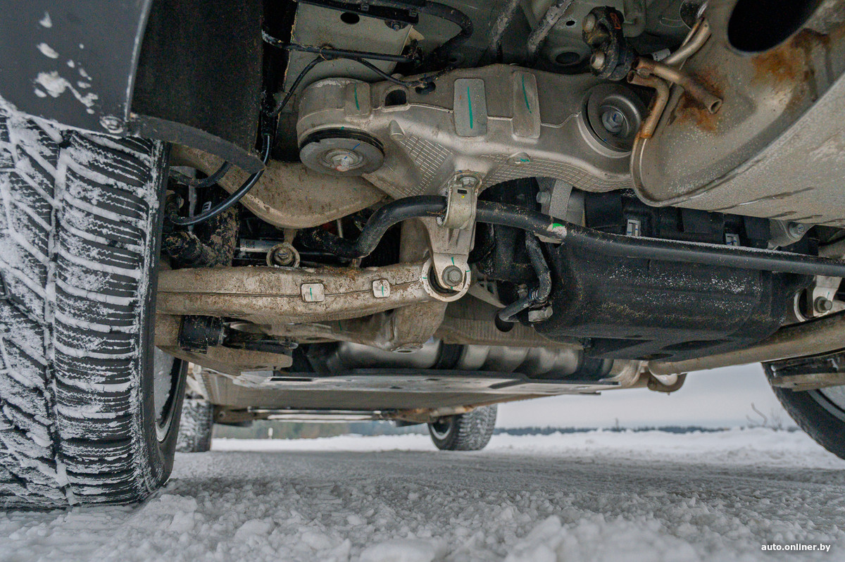 И вы знаете, это работает. В разных режимах темперамент автомобиля меняется. Правда, по понятным причинам нормально удалось отработать лишь «зимнюю» программу. В глубоком (но рыхлом) снегу проходимость кроссовера кажется неограниченной, скорее сдерживают внутренние тормоза водителя. Электронные программы — это, конечно, хорошо, но чтобы засадить тяжелую махину, много ума не надо, особенно на незнакомой лесной дороге.