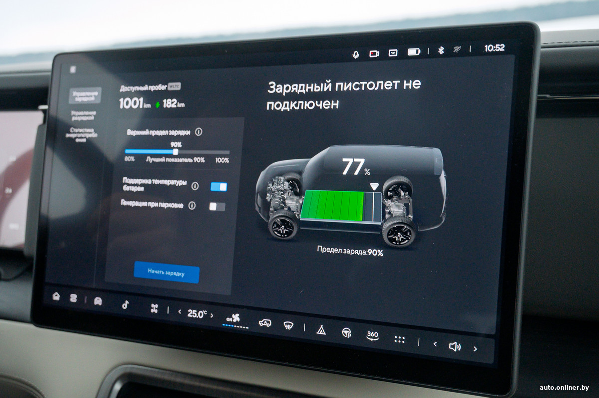 Емкость тяговой батареи — 56 кВт·ч. Немало для гибрида. Но если верить бортовому компьютеру, в среднем машина готова была потреблять около 30 кВт·ч на сотню, временами же расход доходил и до 40 кВт·ч! Так что если ни в чем себе не отказывать по части езды и прогрева салона, реальный запас хода в чисто электрическом режиме вряд ли превысит 150 км, по крайней мере в зимних условиях. Что на самом деле тоже очень неплохо для плагина.