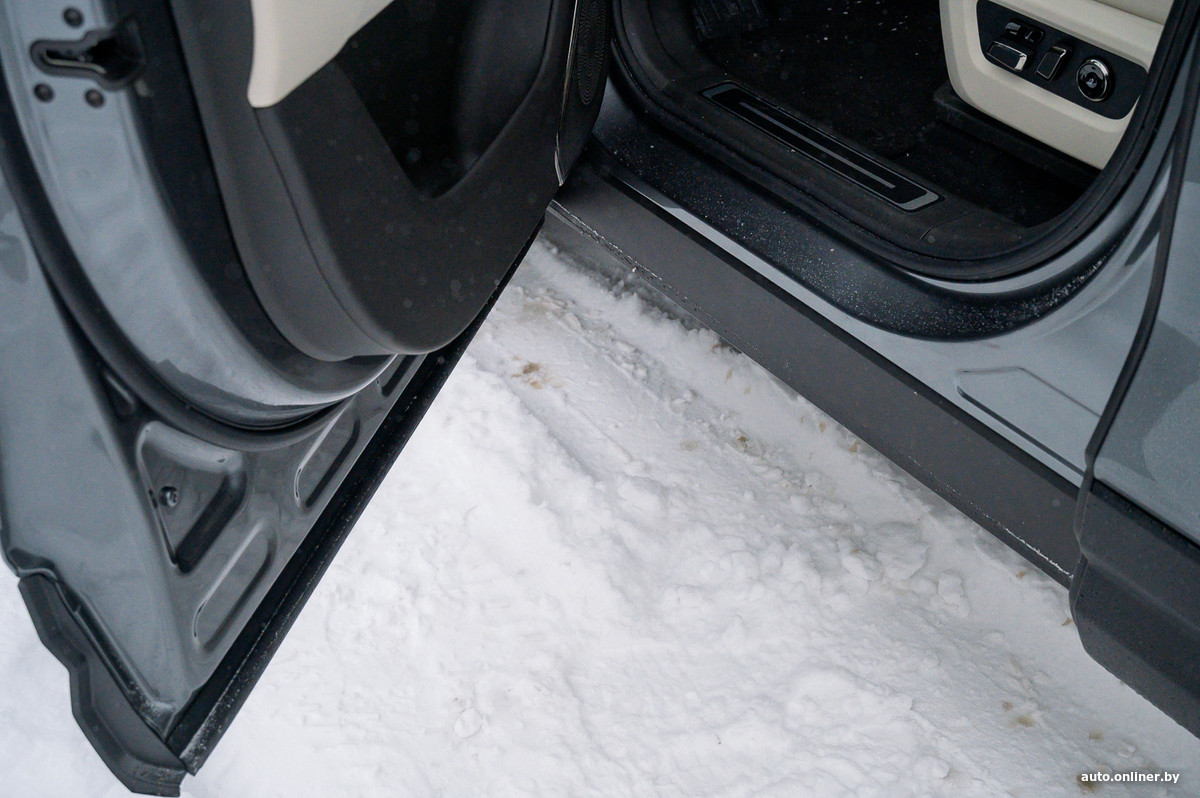 Вот только забираться в салон неудобно — высоко! Проще всего с первым рядом, а вот на втором уже мешают интегрированные подлокотники кресел повышенной комфортности — это как раз одно из ключевых отличий комплектации Business Lounge Edition. Скажем, отряхнуть перед посадкой от снега ноги практически невозможно, ведь придется сначала зайти хотя бы одной из них в салон.