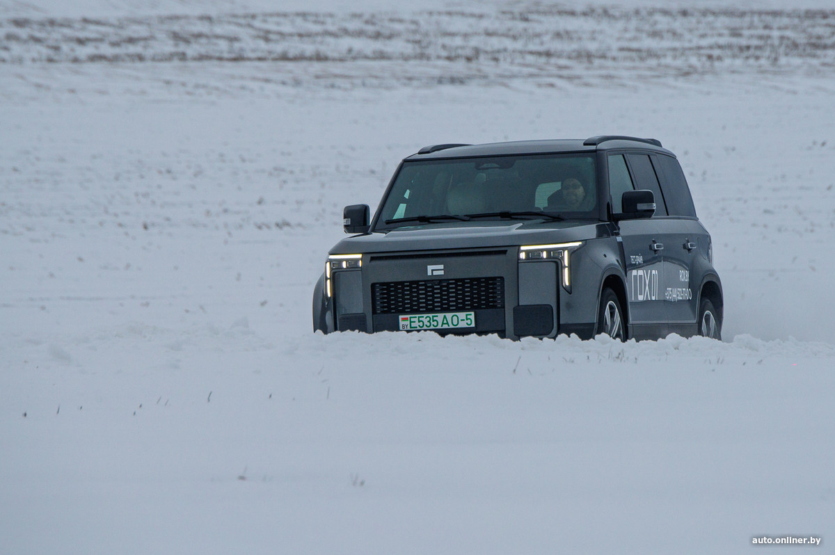 В настоящий момент модельный ряд марки на белорусском рынке представлен лишь одним кроссовером Rox 01, который доступен в двух вариантах исполнения. Стартовая цена касается 7-местной версии Family Edition, а исполнение Business Lounge Edition с 6-местным салоном стоит 255 438 рублей ($86 000). Именно второй вариант мы и взяли на тест, причем с погодой угадали: до циклона Улли оставалось меньше суток, так что удалось оценить этот гибридный кроссовер не только в снежных условиях.