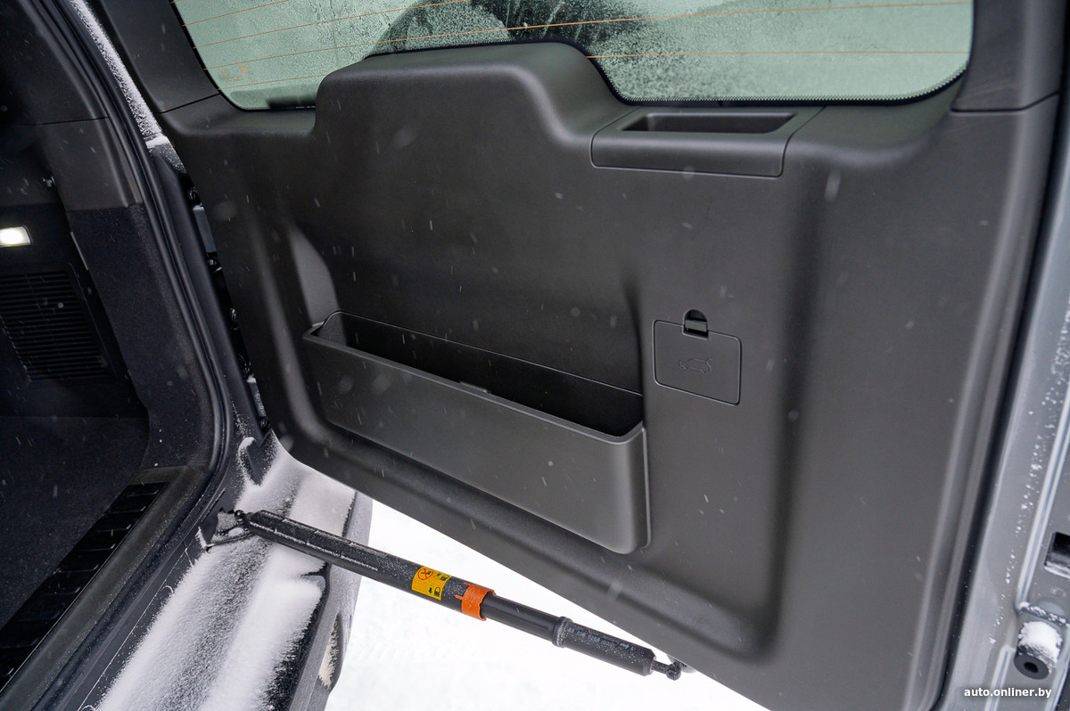 Багажная дверь открывается вбок, как на заправских внедорожниках. Правда, в «неправильную» сторону: лучше бы петли были слева, чтобы стоять ближе к тротуару. Тянуть тяжелую «калитку» с запаской приходится с заметным усилием, зато благодаря мощному механизму она фиксируется в любом положении. К тому же в отличие от боковых дверей здесь имеется доводчик.