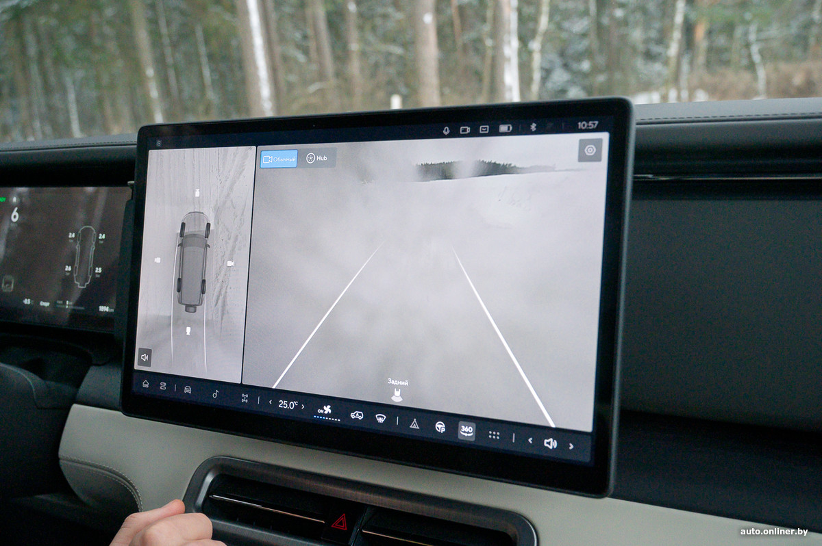 Это особенно важно с учетом того, что небольшой экранчик, выполняющий роль внутрисалонного зеркала, имеет не очень яркую картинку и часто бликует, а камера заднего вида, лишенная омывателя, в зимний день то и дело оказывалась залеплена снегом и грязью. Жаль: картинка у нее очень качественная.