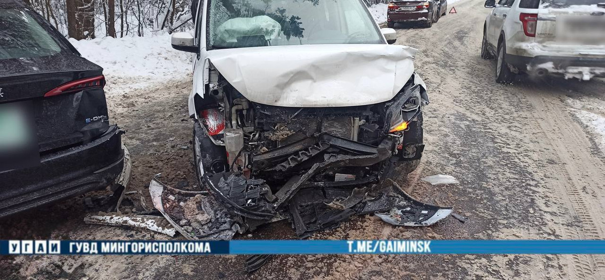 ГАИ Минска сообщила о ДТП, которое произошло сегодня утром на улице Липковской. По предварительной версии, 57-летний водитель Hongqi не учел дорожные и погодные условия, выехал на встречную полосу и столкнулся с Volkswagen.