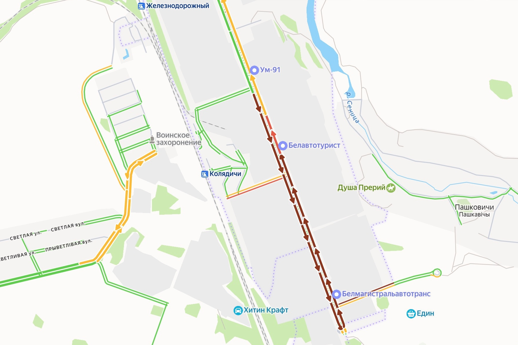 Журналист Onlíner связался с сотрудником одного из предприятий, размещенных в промзоне Колядичи, и тот подтвердил, что проблемы c выездом в город вчера и сегодня есть.