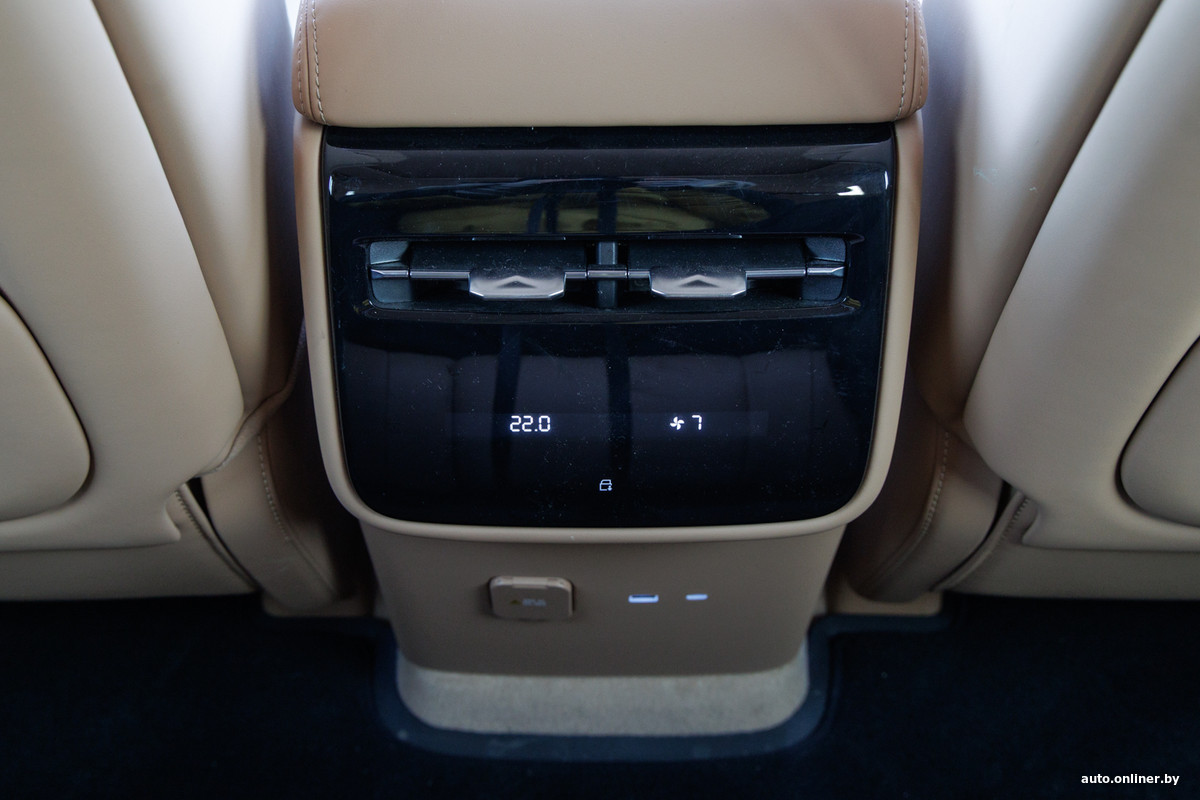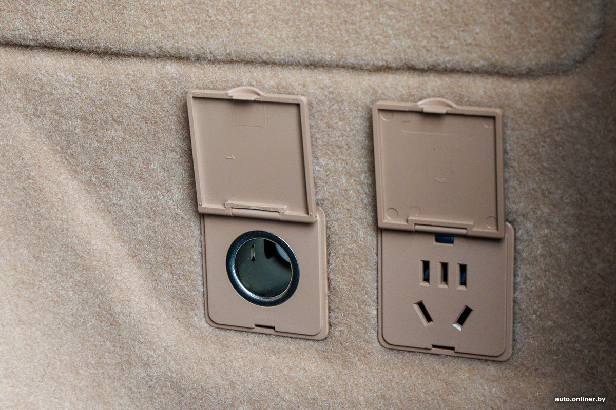 Зато вот вам мини-холодильник, розетки на 220 В и теплые опции: есть подогрев руля, а также первого и второго ряда сидений. А водителя и переднего пассажира еще и вентиляцией балуют, и массажем с тремя режимами. Также для водителя предусмотрен регулируемый поясничный упор, а в память можно занести до трех вариантов регулировок. Но, как водится, подушки кресел коротковаты, а их длина не регулируется (проблема очень многих китайских автомобилей).