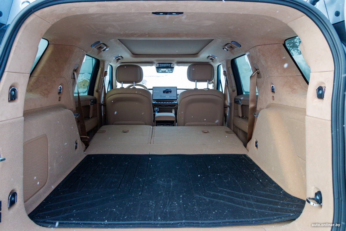 Вместо сомнительных экспериментов с третьим рядом сидений предпочтение отдано полноценному багажнику, объем которого варьируется в пределах 828—2112 литров. Из плюсов отметим большой проем, розетки на 12 и 220 В, петли для крепления багажа и раскладываемый в ровный пол задний диван. Из минусов — отсутствие отделений или хотя бы сеток для мелочовки. Ведь все же будет летать во время движения. Или нет?