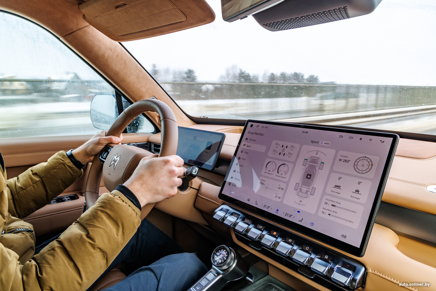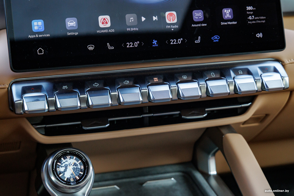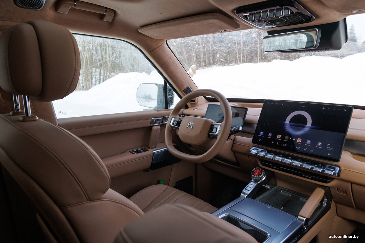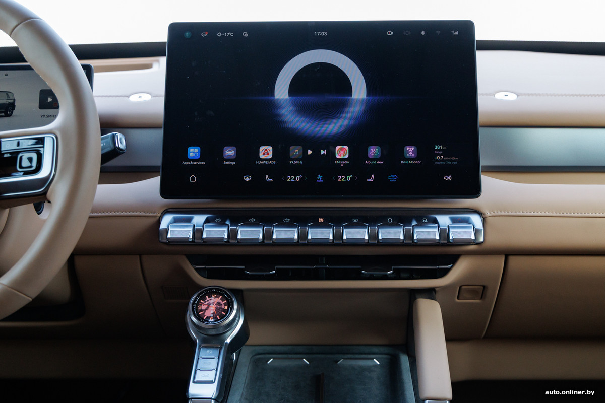 Внутри 817-й обходится без массивных деталей и эпатажа, хотя хватает и своих примечательных элементов. Например, в левой части центральной консоли размеcтили «часы». На самом деле этот селектор, отвечающий за выбор ездовых программ, так что при повороте шайбы картинка на экране меняется.