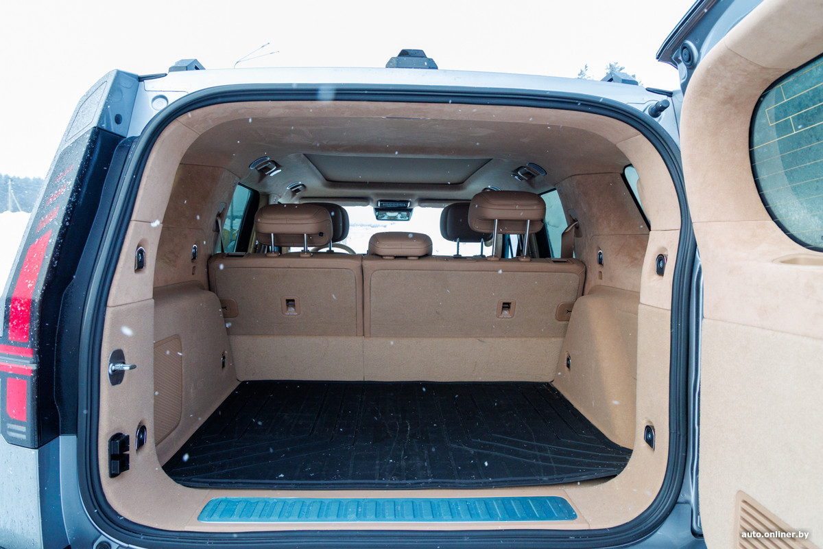 Имеется и «крабовый ход», и «танковый разворот», при котором диаметр маневра уменьшается до 7,2 метра. Но знаете, что впечатлило больше всего? Уменьшенный радиус разворота, который за счет управляемых задних колес составляет всего 10,4 метра. В этот параметр не каждая малолитражка впишется, а тут огромный внедорожник, что и покоряет.