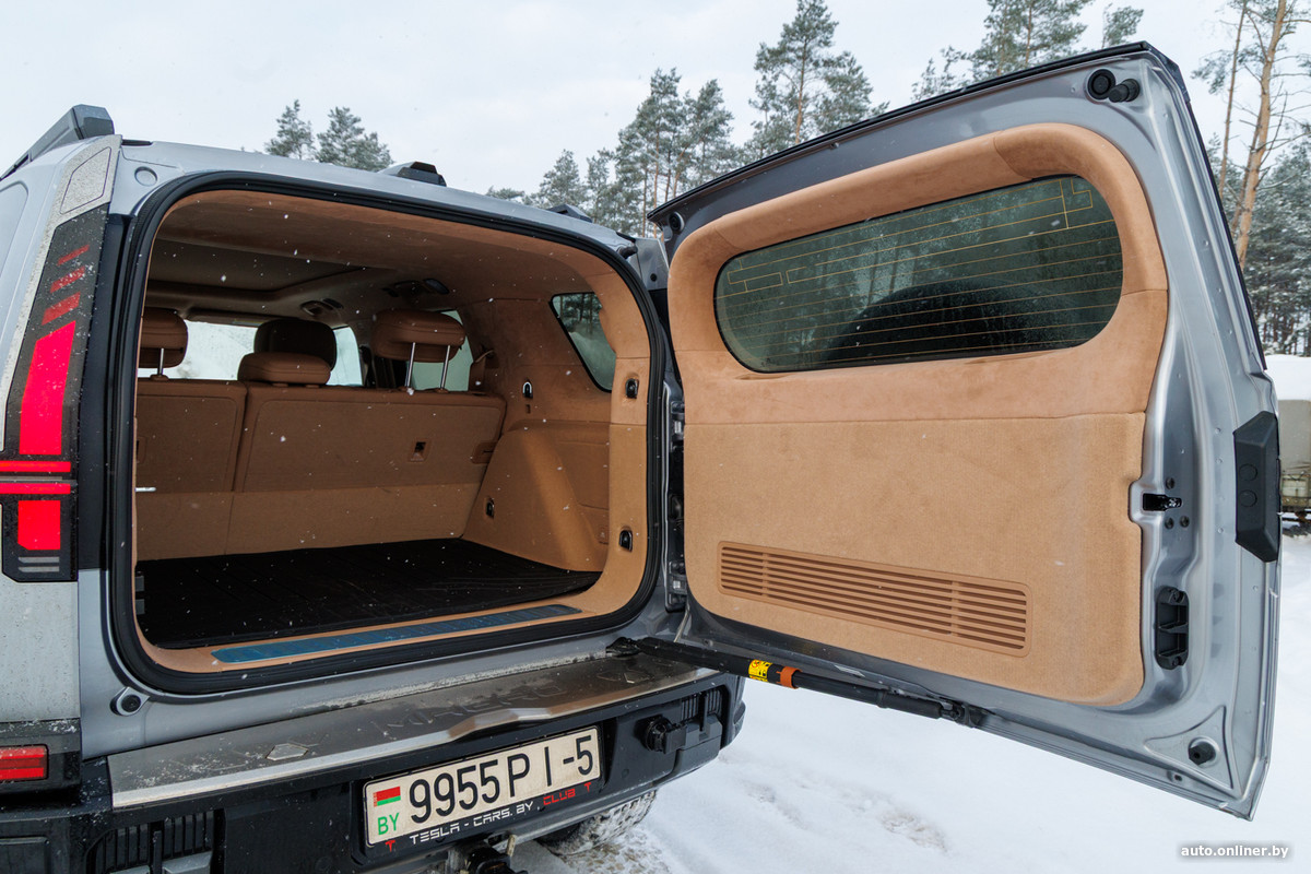 Агрессии в оформлении передней части кузова поубавилось, но фирменные черты остались. Речь о характерной форме панели (с подсветкой по контуру) и характерном «прищуре» светодиодных фар. Сзади принадлежность к марке безошибочно угадывается по уже знакомым «крестам» фонарей и практически вертикальным задним стойкам. На крышке багажника закреплена запаска, но вместо нее может быть и кофр для хранения вещей.