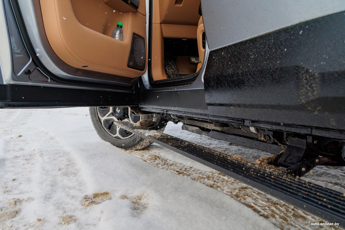 Фаркоп с розеткой — заводские «допы», которые указали при размещении заказа на заводе. Это же относится и к рейлингам на крыше. А вот выдвигающиеся подножки — стандарт, равно как и доводчики дверей. Удобно. Но вот «задумчивость» электронных замков слегка раздражает: тянешь за крупную ручку — а дверь открывается с задержкой в доли секунды. Такое же наблюдали во время теста Audi A6 — выходит, «не баг, а фича»?