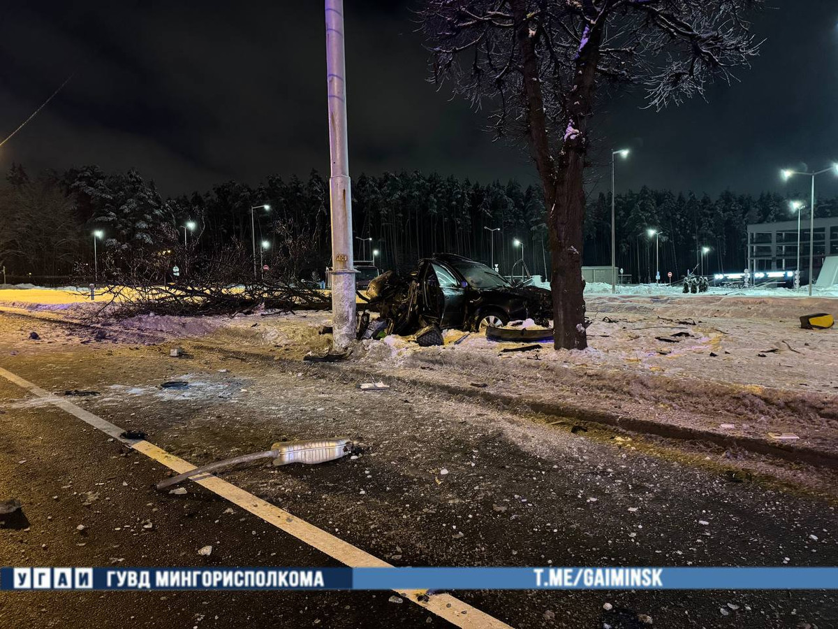 ДТП случилось сегодня ночью. 38-летний водитель Audi ехал по проспекту Независимости вблизи здания №134 в Минске. Мужчина выехал за пределы проезжей части, врезался в дерево и осветительную мачту.