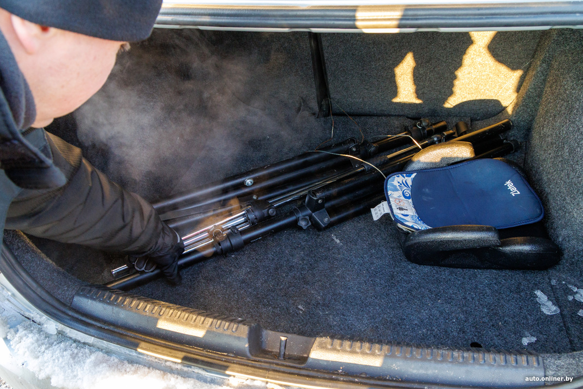 Заглянули в багажник — снова сюрприз: кто-то оставил три штатива для фото- или видеокамеры — недешевое имущество.