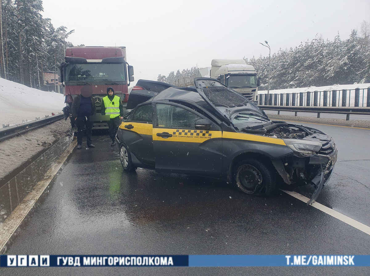 На МКАД грузовик врезался в стоящую Lada — пострадали два человека
