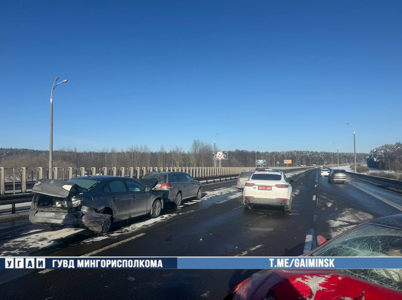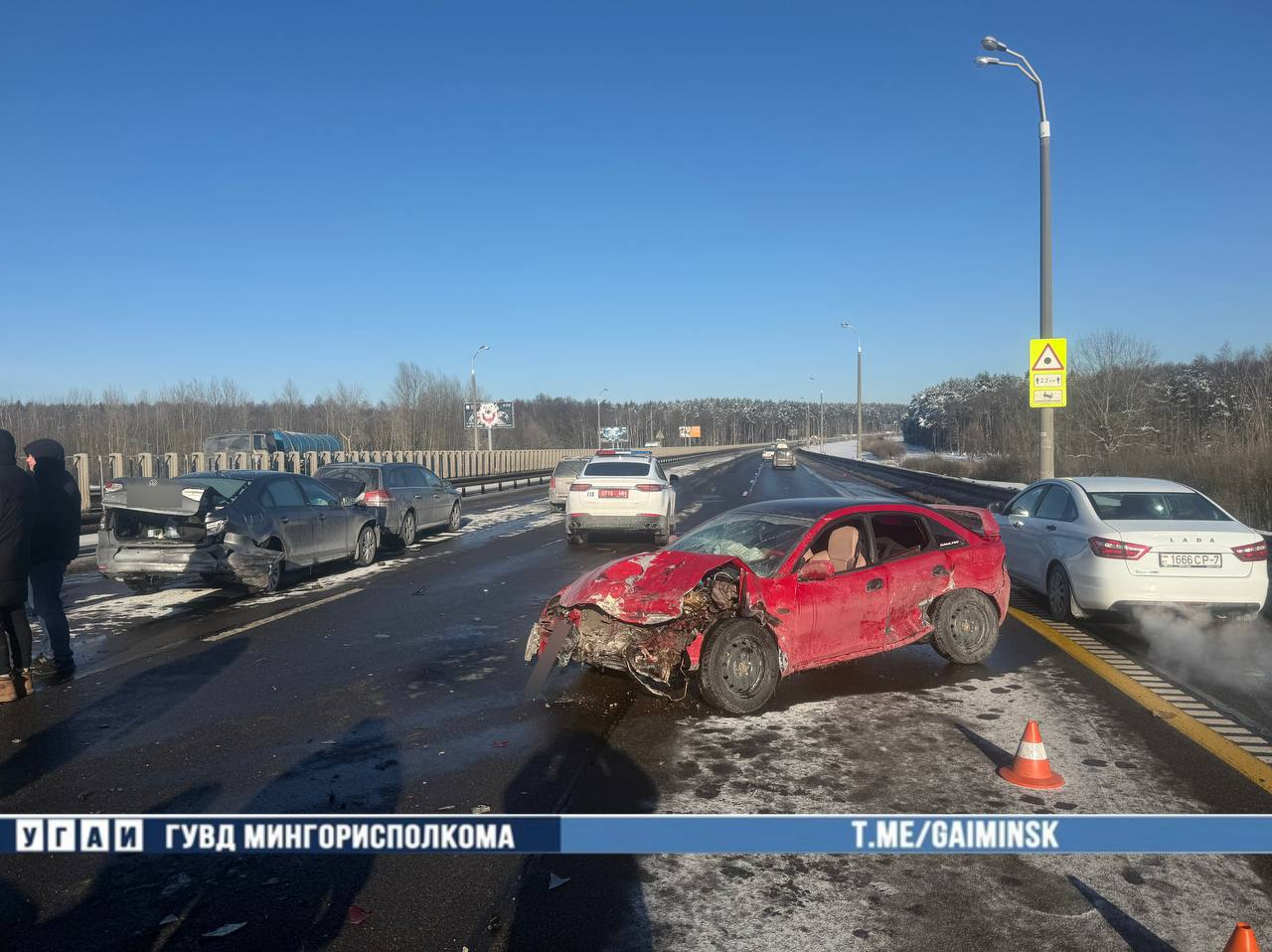 В столкновении участвовали шесть автомобилей: Chevrolet, Opel, Peugeot, Mazda и два Volkswagen. После аварии водитель Mazda был доставлен в больницу для обследования.