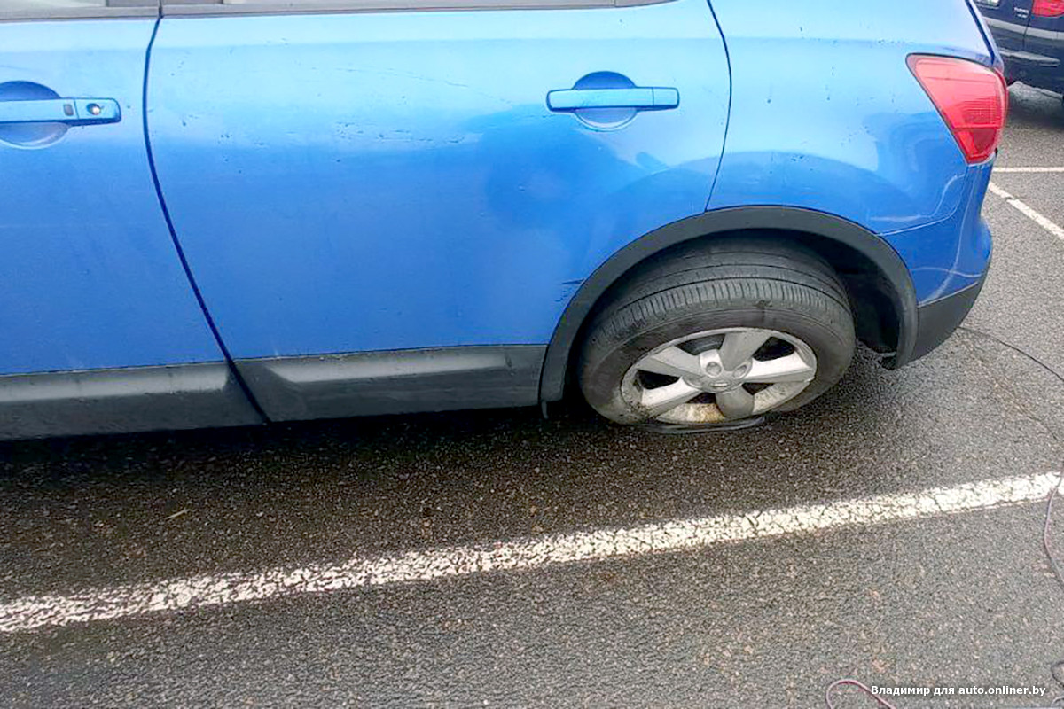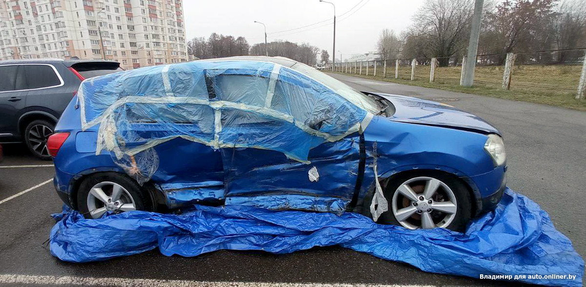 Голубой Nissan Qashqai все эти месяцы так и стоит разбитый.