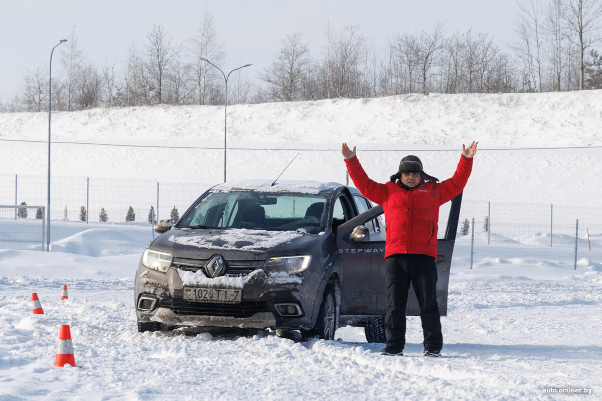 Все заезды будут проводиться на одном и том же автомобиле: это Renault Logan Stepway с передним приводом. За рулем для чистоты эксперимента один водитель — Юрий Краснов. Он — опытный и мастеровитый инструктор, который отлично знает эту машину, да и вообще отлично управляется с любыми машинами, раз уж на то пошло. Но сможет ли он победить зиму?