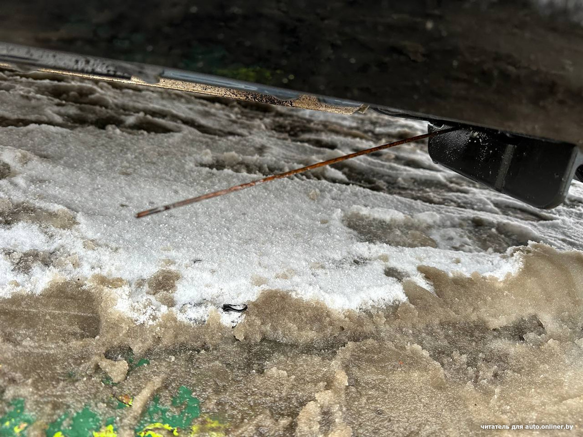 — Я увидел такую спицу на своем Nissan N7. Подумал сначала, что порог отслаивается. Потянул — спица начала гнуться. Присмотрелся: она, оказывается, из защиты торчала. Ну, я выковырял ее, — рассказал Onlíner наш читатель.