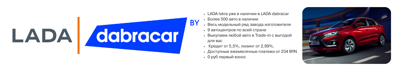 – более 500 авто в наличии: Lada от 29 900 BYN, новая Lada Iskra — от 42 900 BYN;